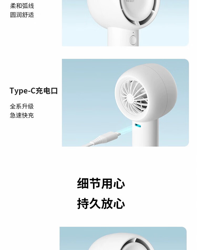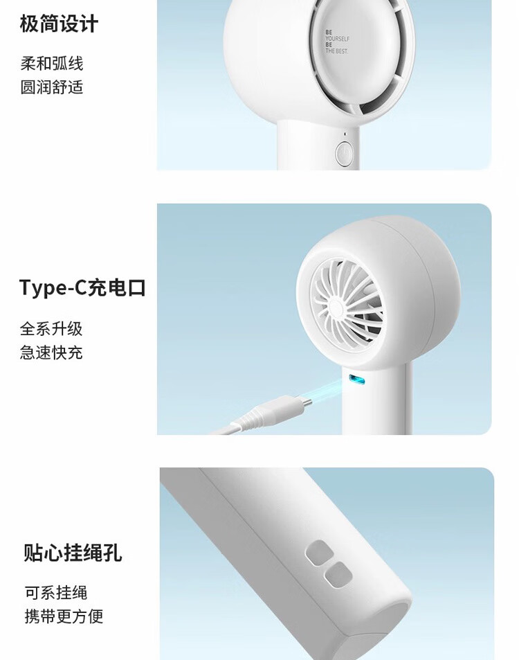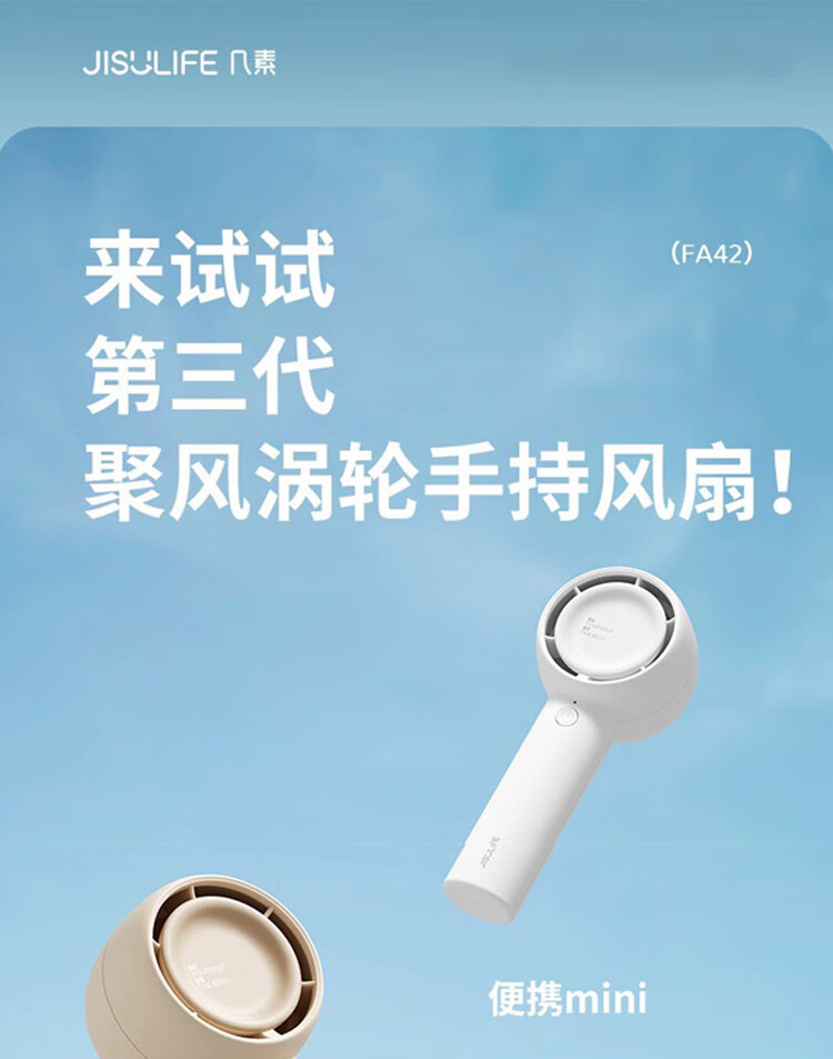 【小家电】几素小风扇手持【涡轮聚风】迷你小型随身便携式usb充电大风办公室学生宿舍儿童无叶轻音电风扇FA42 HF