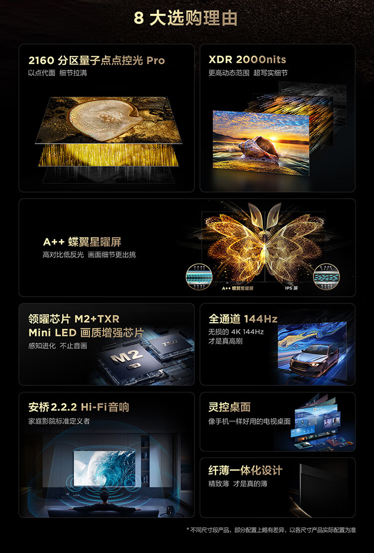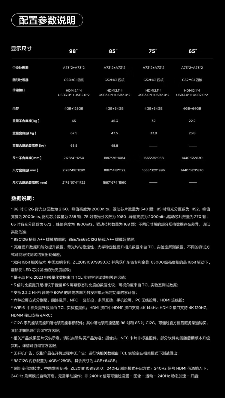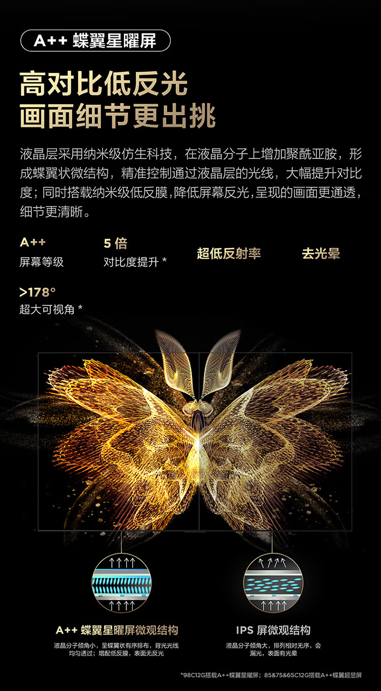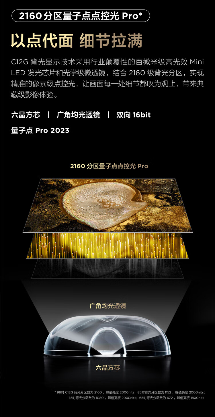 TCLTCL电视 98C12G 98英寸 2160分区量子点点控光Pro XDR2000nits A++蝶翼星曜屏 QD-Mini LED电视 一级能效