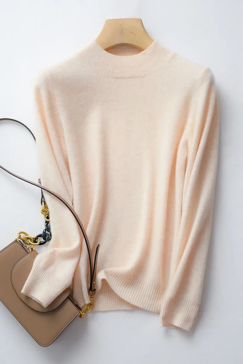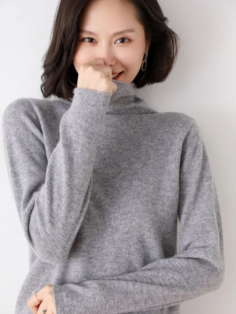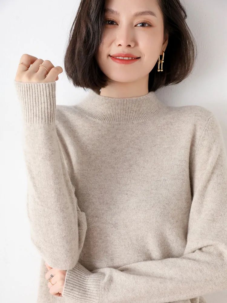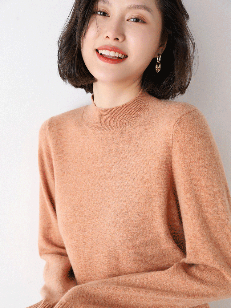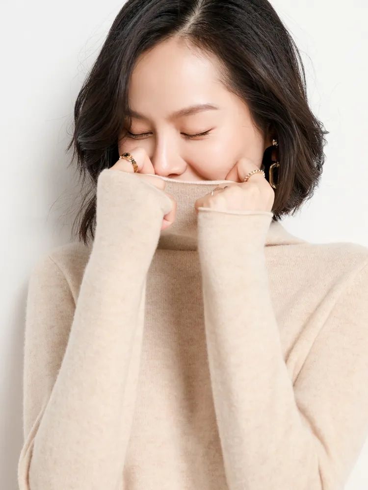 不喜欢高领,又想挡风御寒的女士,可以选半高领。领口高度恰到好处,不会觉得脖间臃肿。
