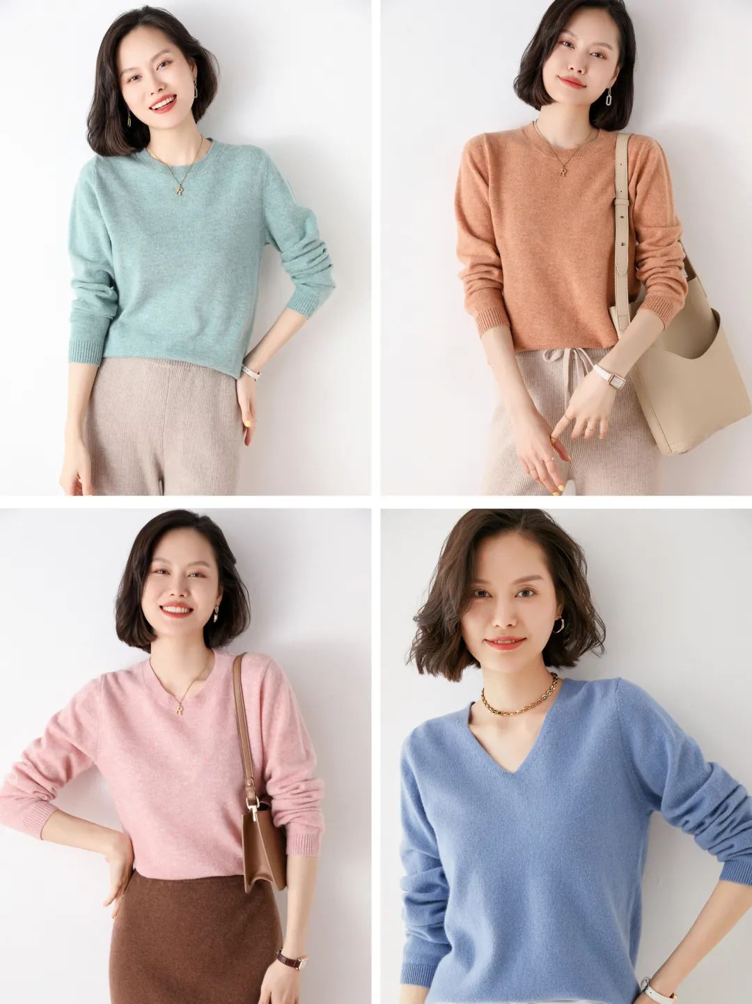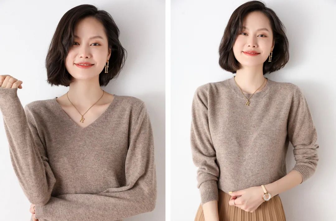 4种领型:V领、圆领、堆堆领、半高领,不管是日常居家还是上班通勤,都合适。