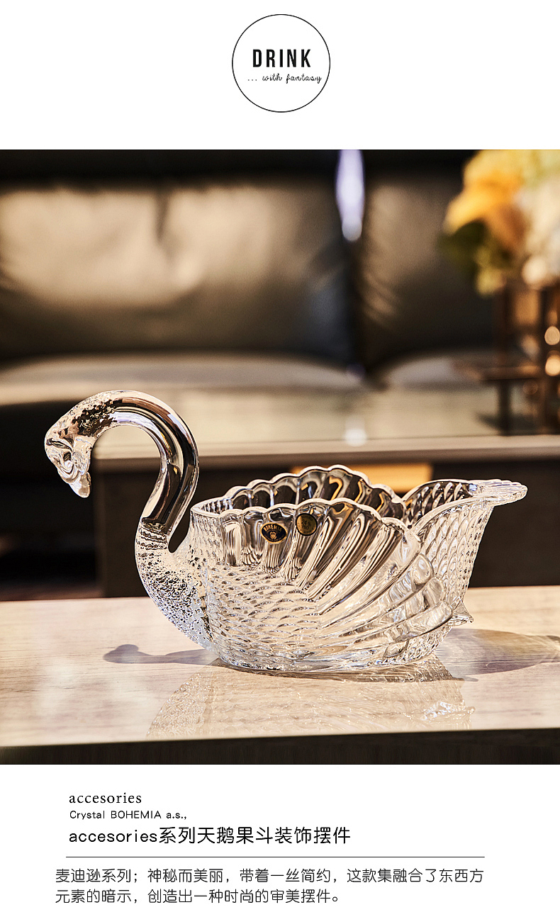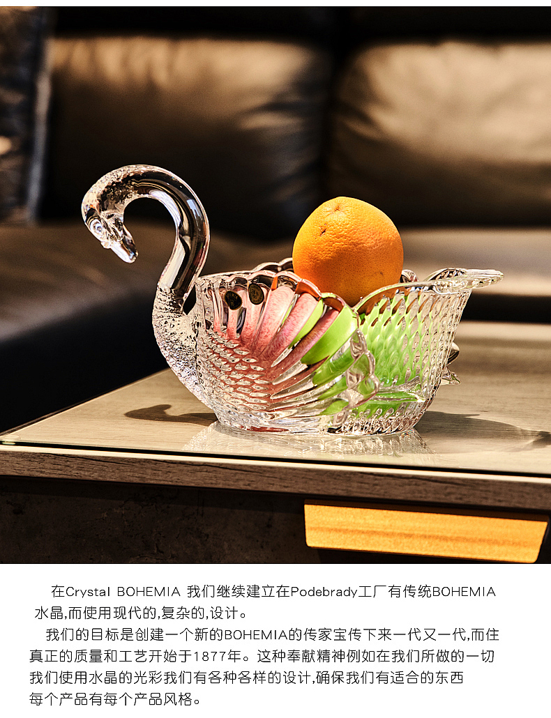 捷克BOHEMIA原装进口水晶玻璃天鹅果盘