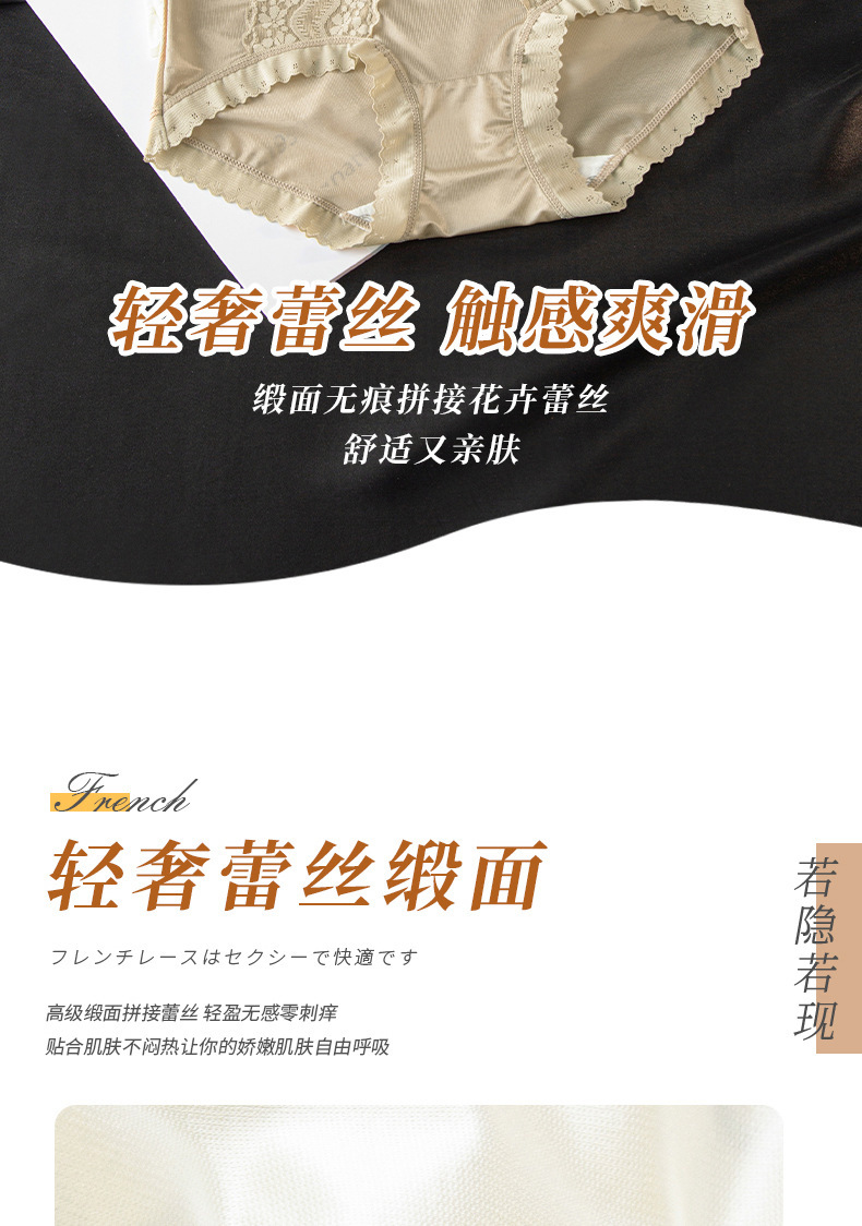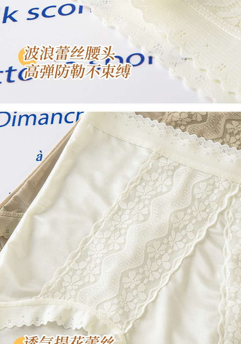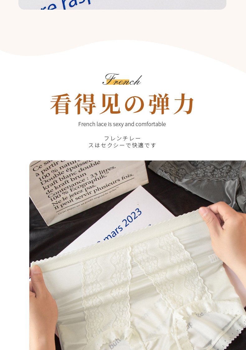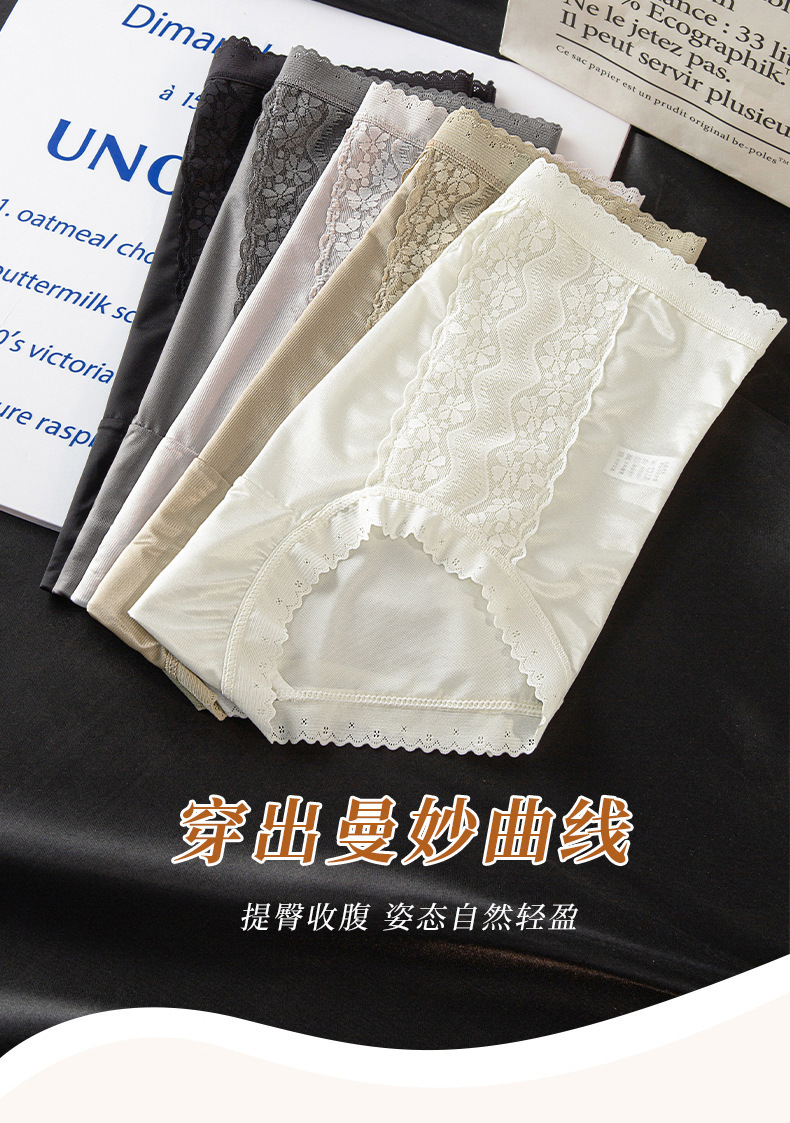 包裹翘臀 穿出S曲线 ins清丽柔婉#法式蕾丝内裤女生性感桑蚕丝底裆高腰三角裤