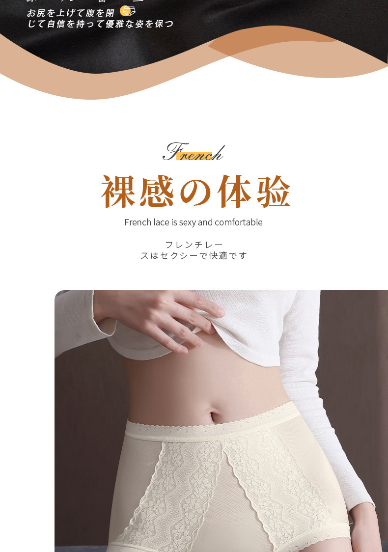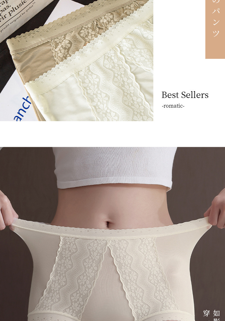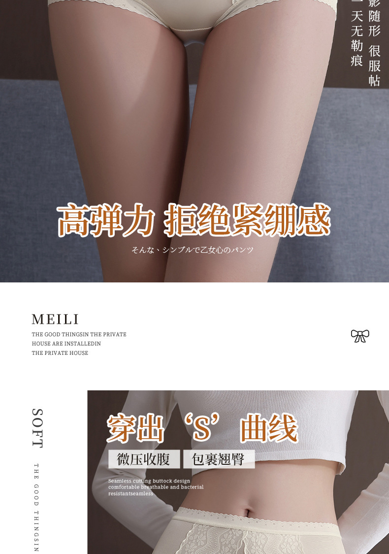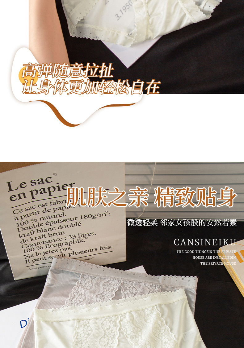 包裹翘臀 穿出S曲线 ins清丽柔婉#法式蕾丝内裤女生性感桑蚕丝底裆高腰三角裤