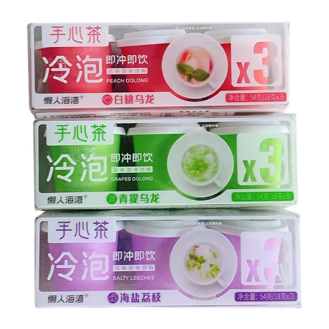 【6.2】懒人海湾手心茶英式乳茶三枚装54克每盒*3盒(9枚)青提乌龙/海盐荔枝/白桃乌龙 (23年10月到期 三盒随机味道) 冷泡系列的可冷热双泡