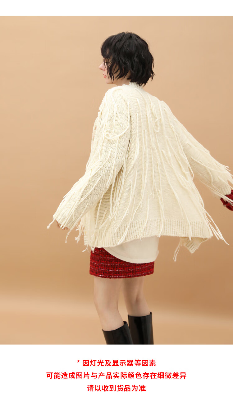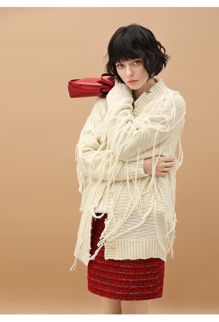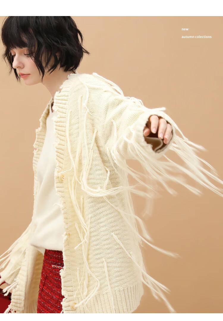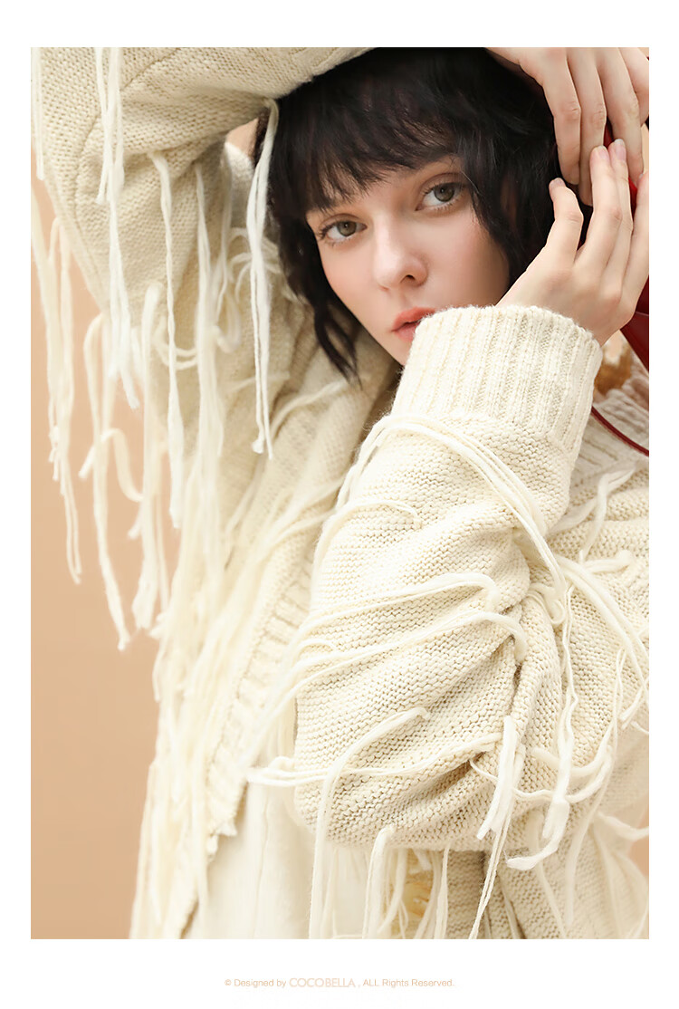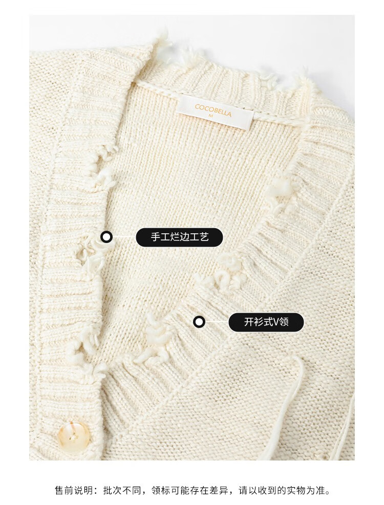 COCOBELLA设计感流苏剪破针织开衫女秋冬软糯毛衣外套MZ958
