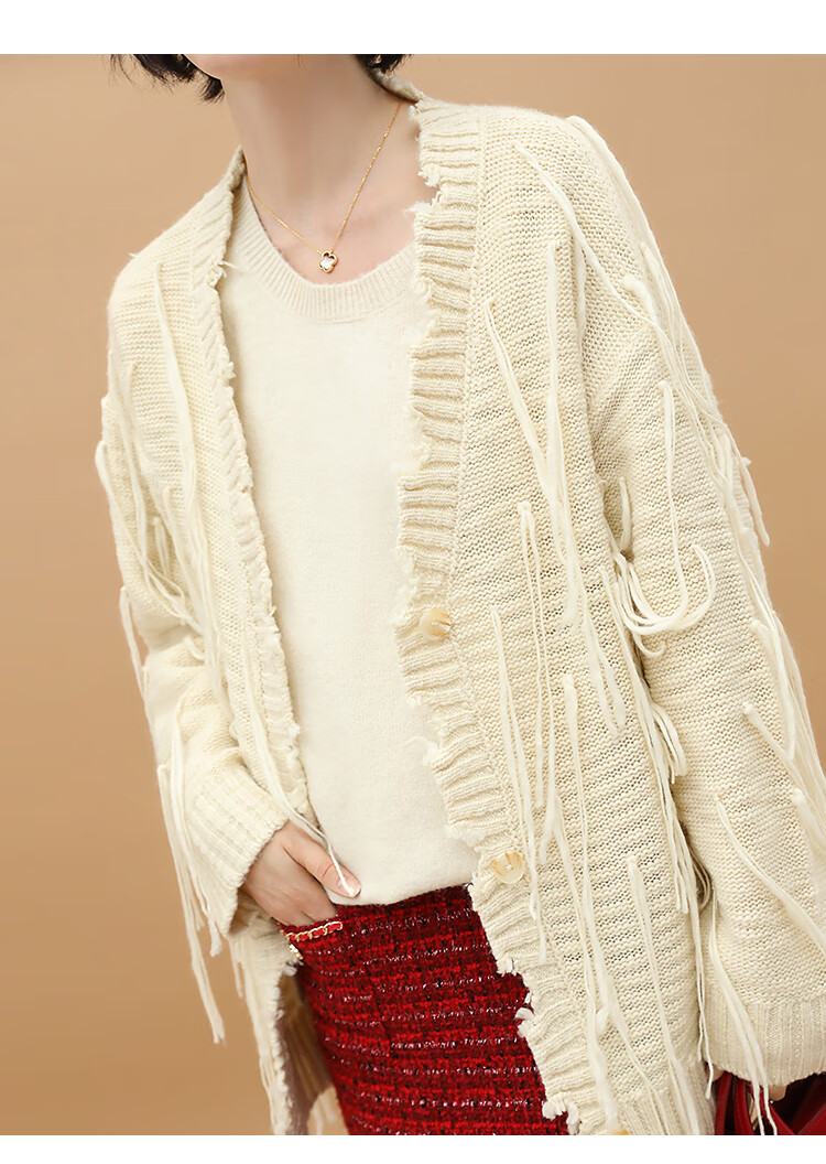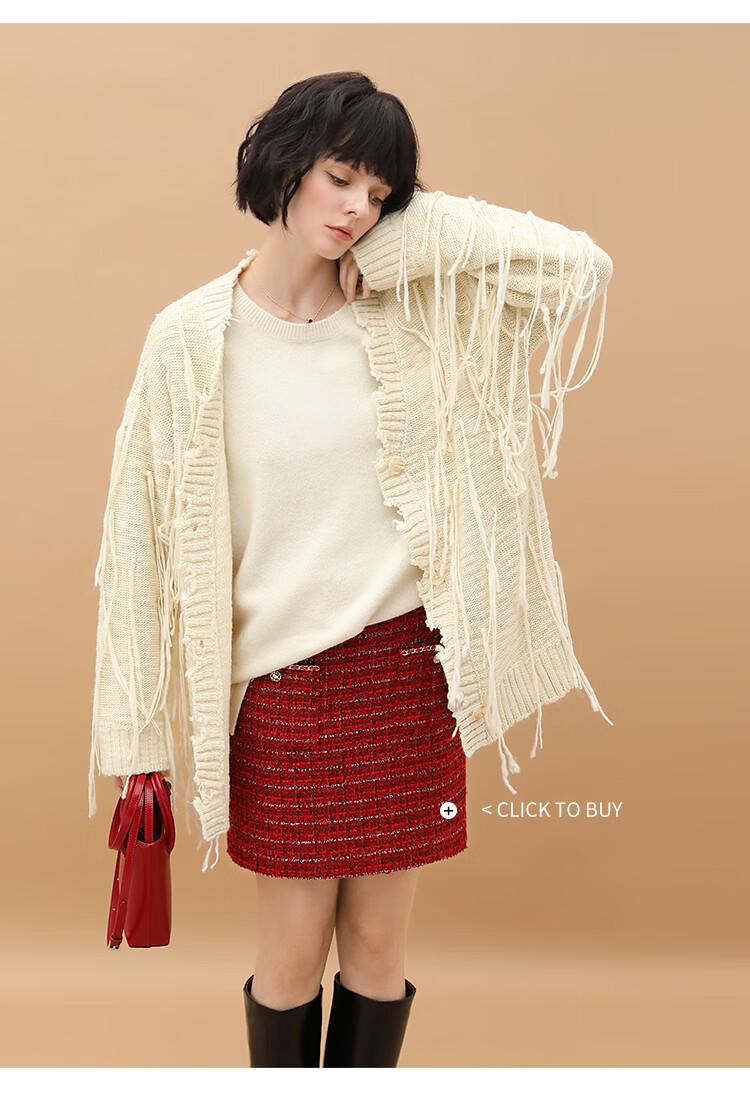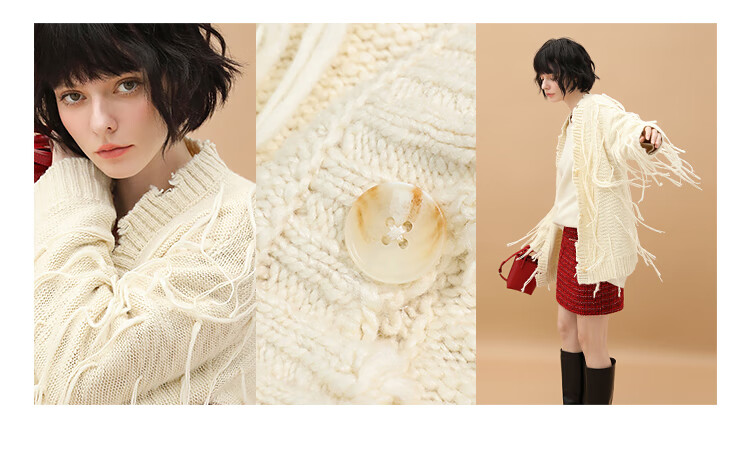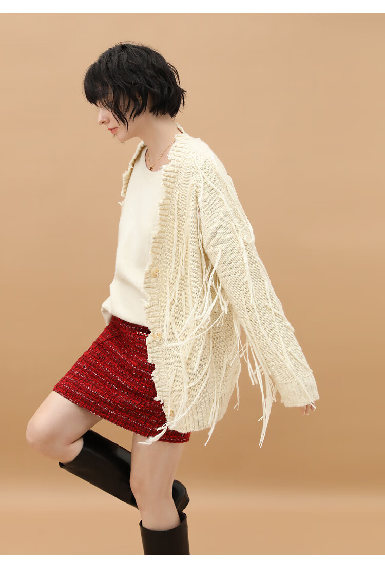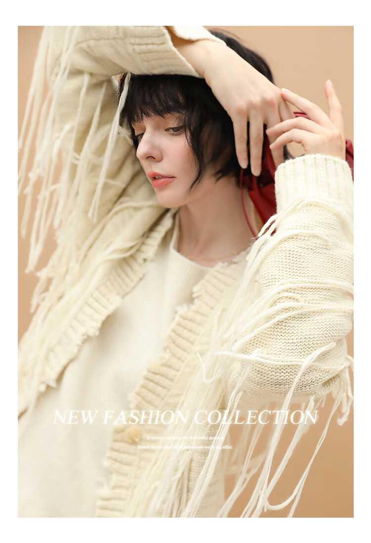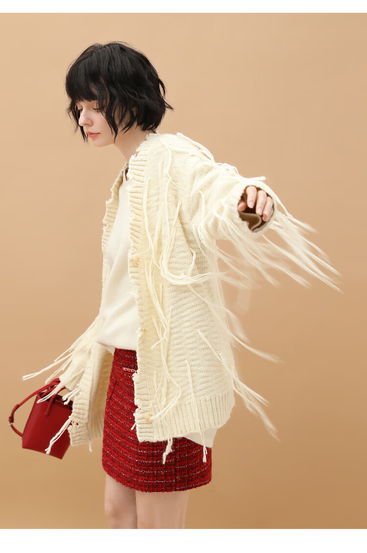 COCOBELLA设计感流苏剪破针织开衫女秋冬软糯毛衣外套MZ958