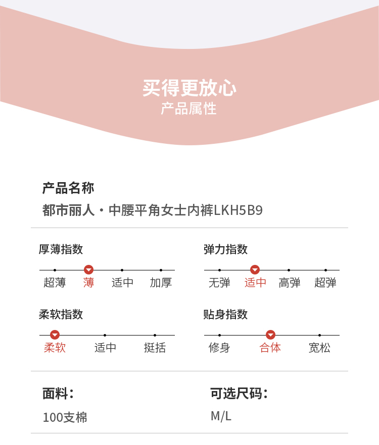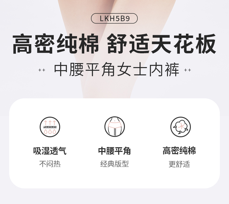 都市丽人纯棉100支棉舒肤棉双百系列平角裤LKH5B9