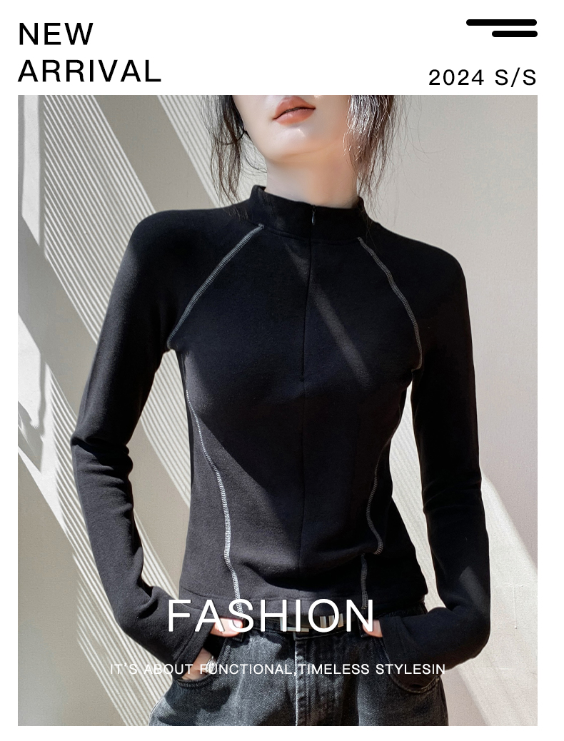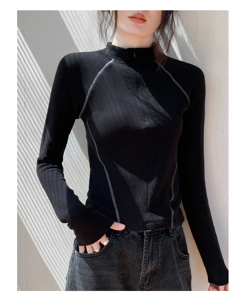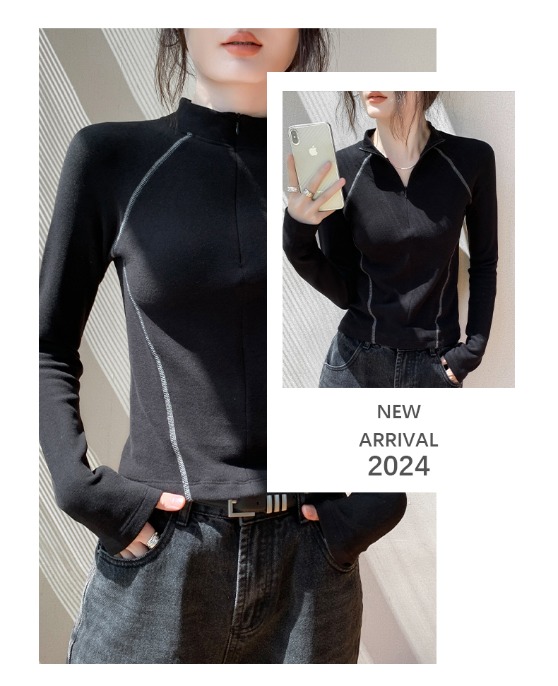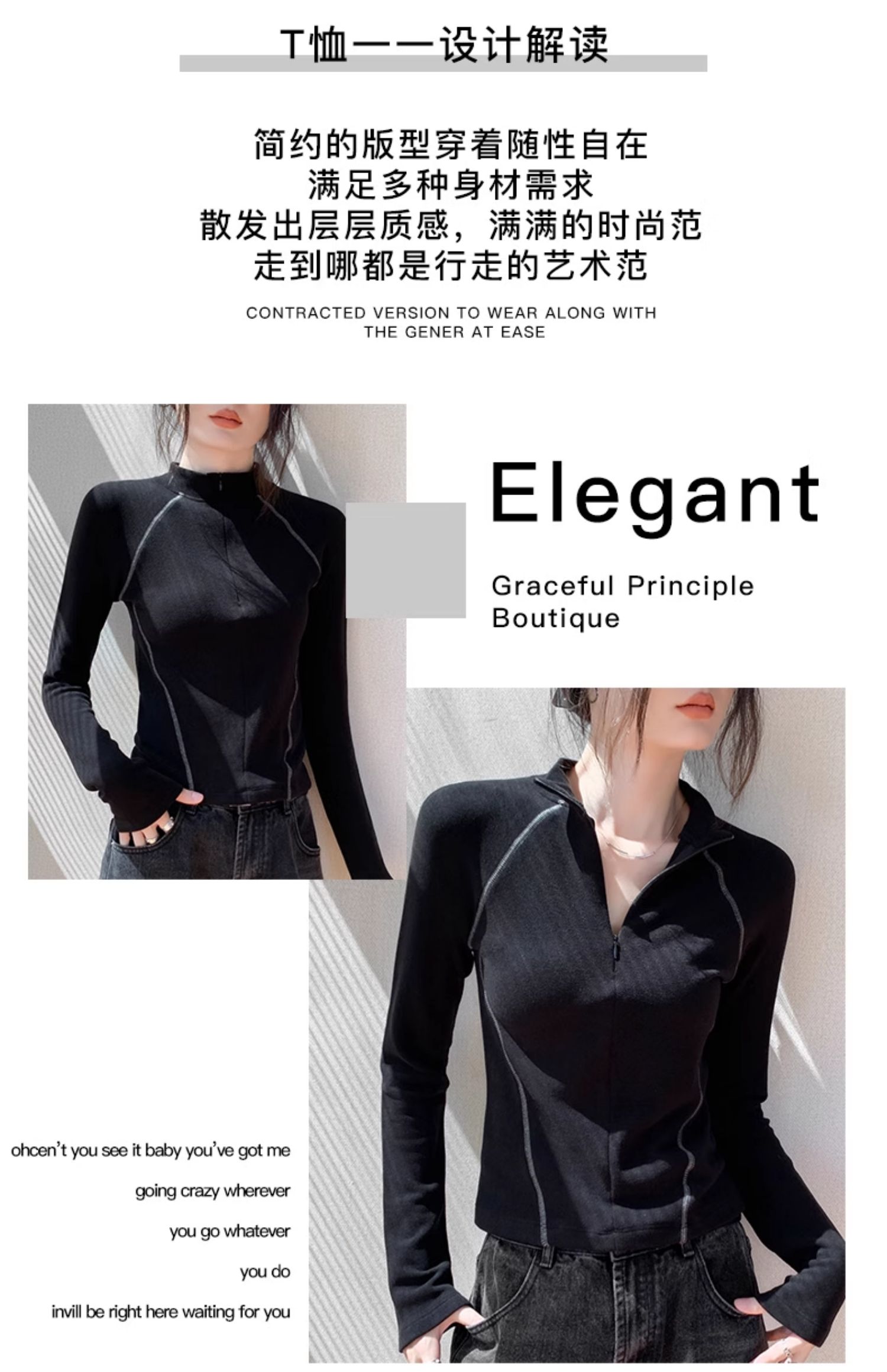 ♥️年度压轴高品质❗️【lulu风半高领拉链长袖】随便叠一秒纸片人的感觉💃重塑头肩比 拉长肩颈比例~