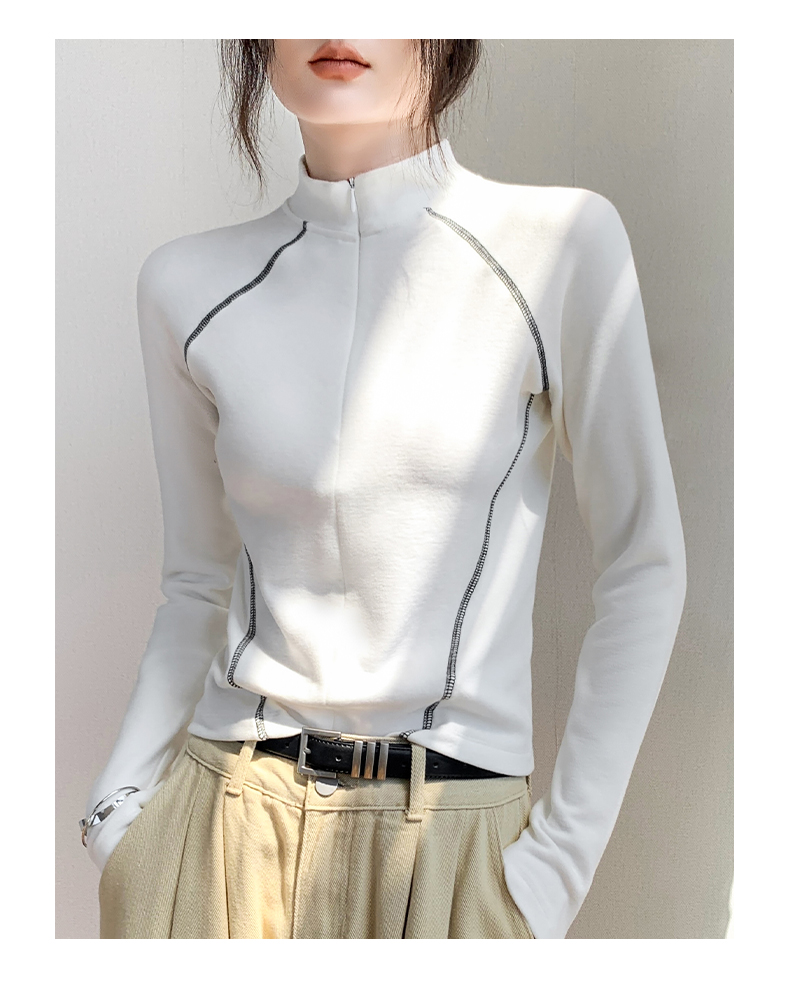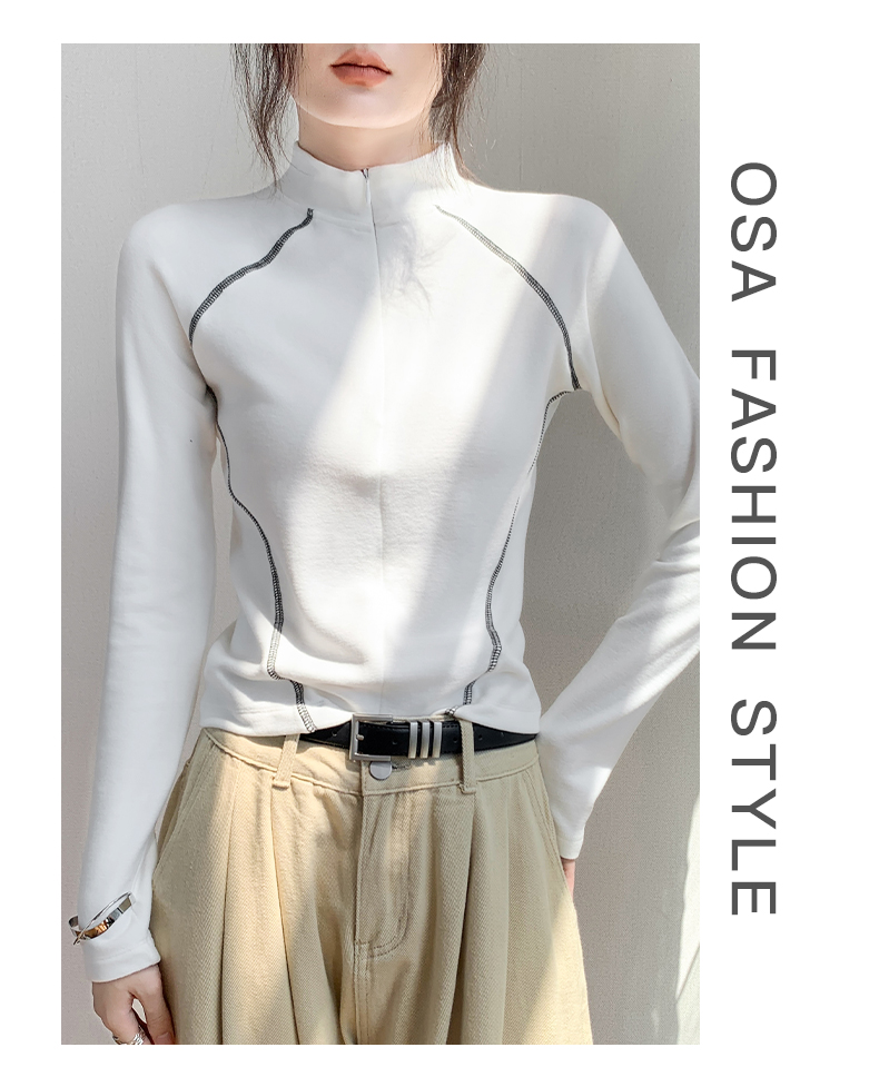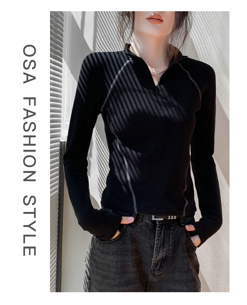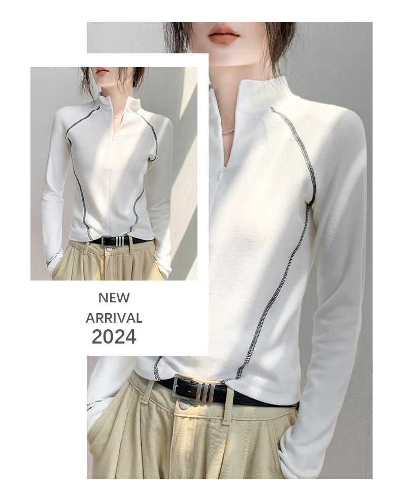 ♥️年度压轴高品质❗️【lulu风半高领拉链长袖】随便叠一秒纸片人的感觉💃重塑头肩比 拉长肩颈比例~