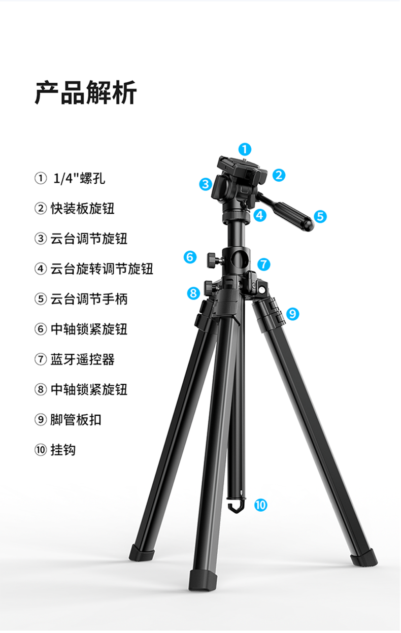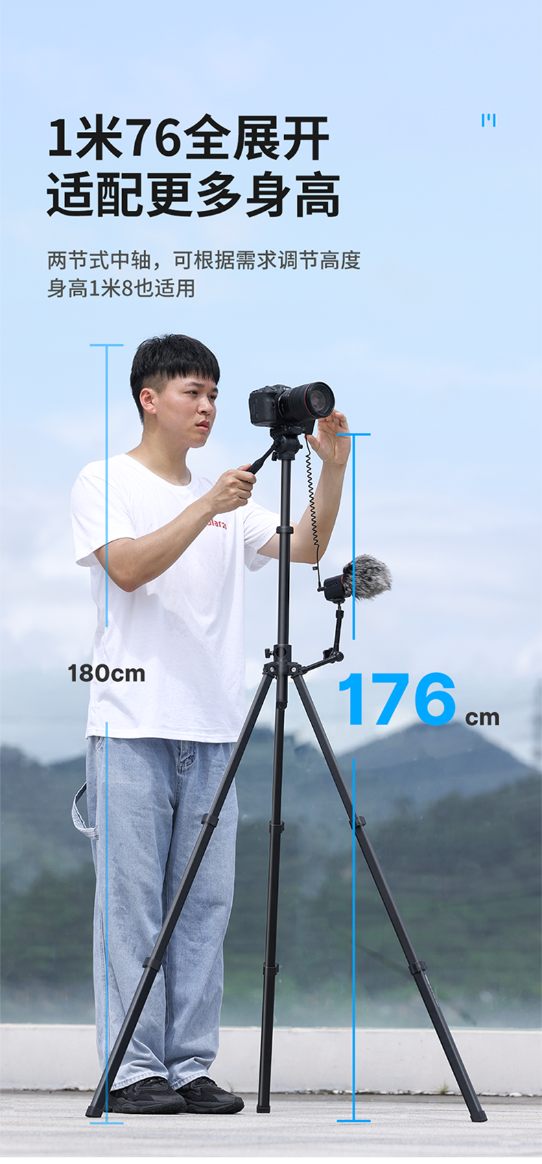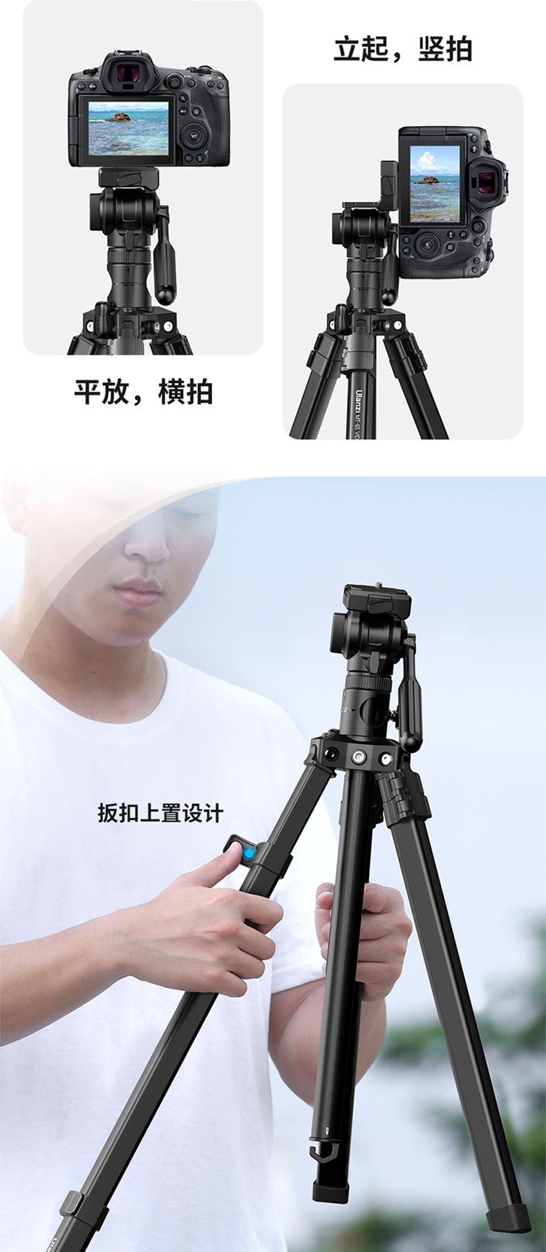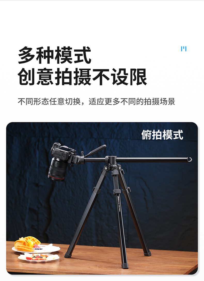 Ulanzi优篮子MT-65 摄影铝合金三脚架俯拍摄像中轴横置单反相机支架摇臂旋转摄影支架横拍杆视屏拍摄三角架