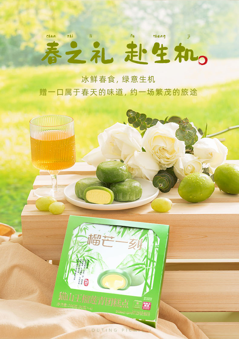 榴芒一刻 猫山王榴莲青团糕点600g(50g×4枚×3盒)