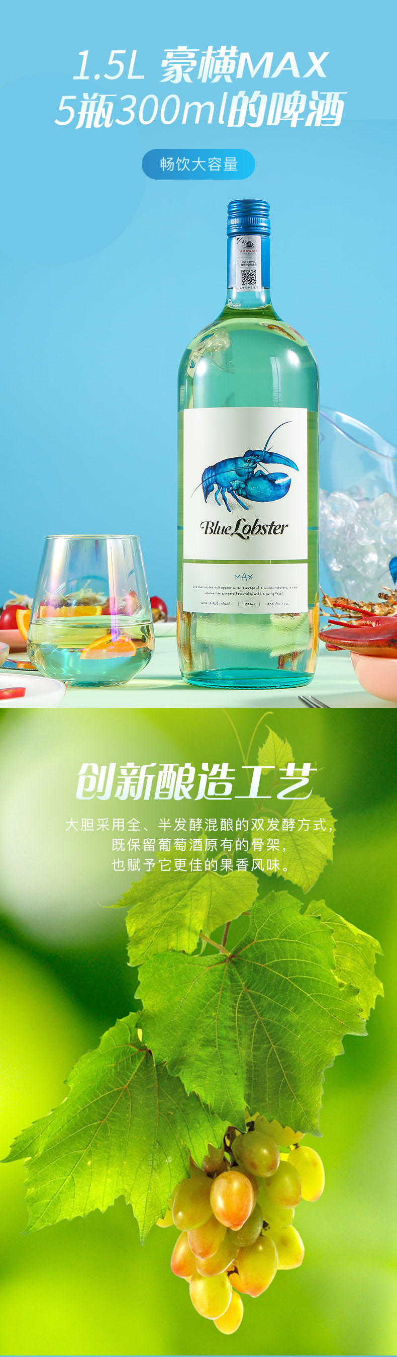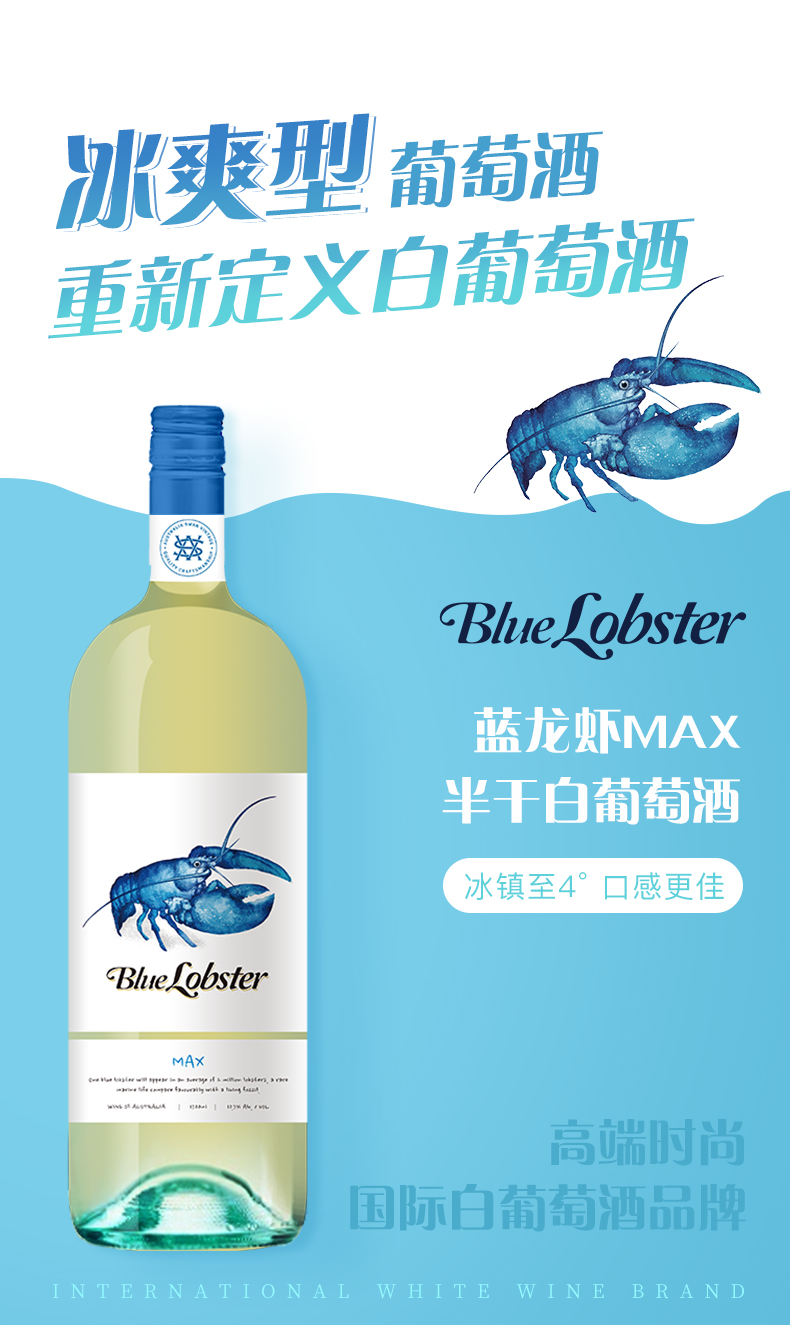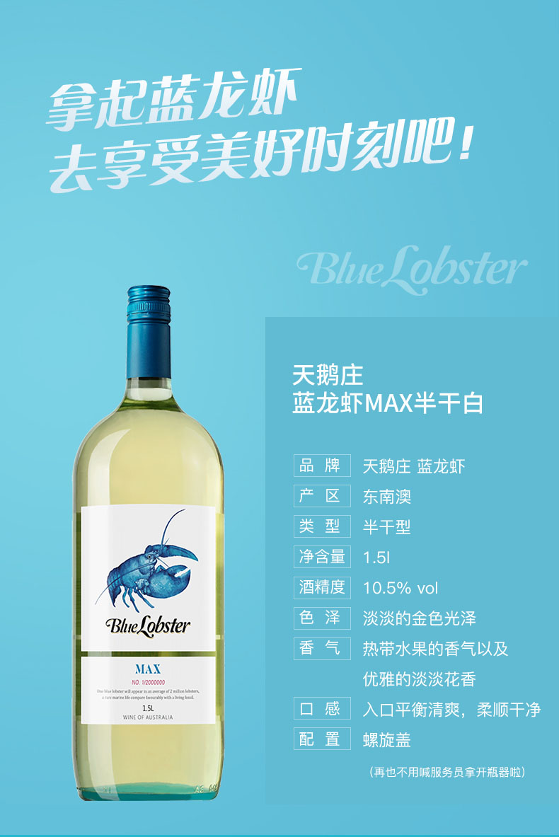 天鹅庄蓝龙虾MAX霞多丽半干白葡萄酒1.5L