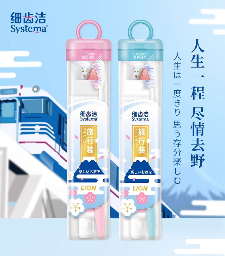 日本狮王袋式旅行套装(细齿牙刷+牙膏40g)