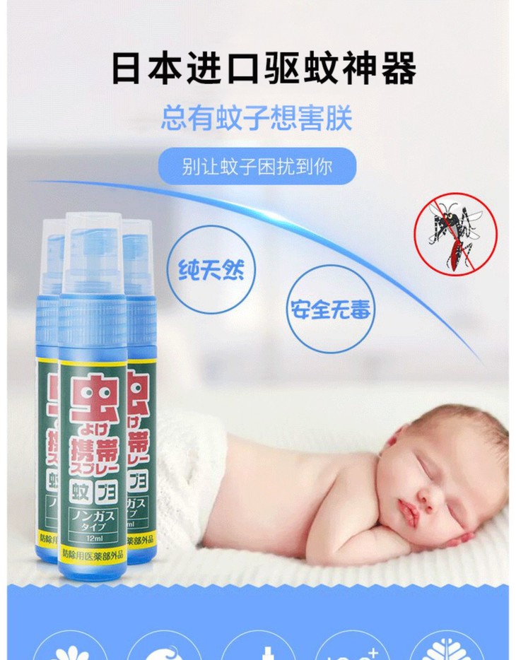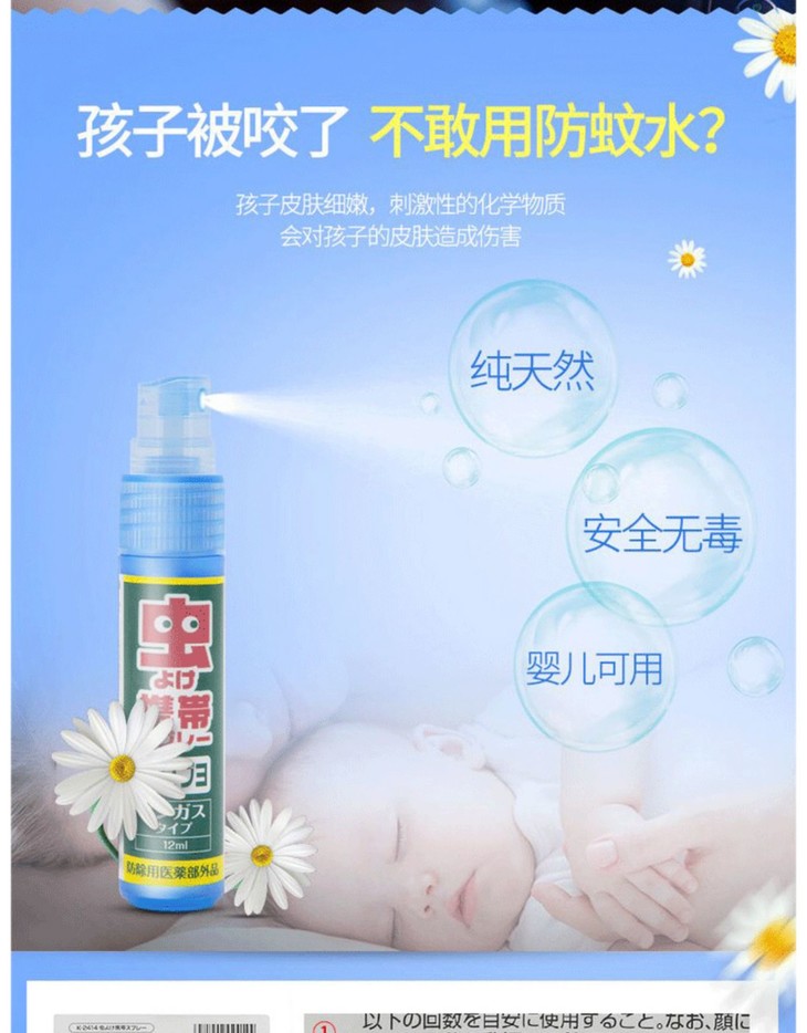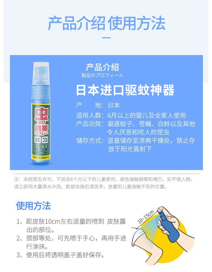 日本 驱虫喷雾孕妇儿童去痱止痒防蚊液户外随身消毒杀菌驱蚊液
