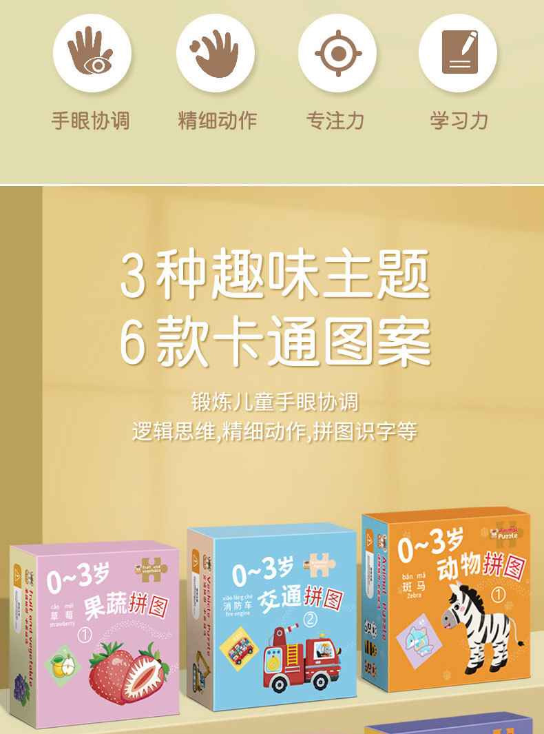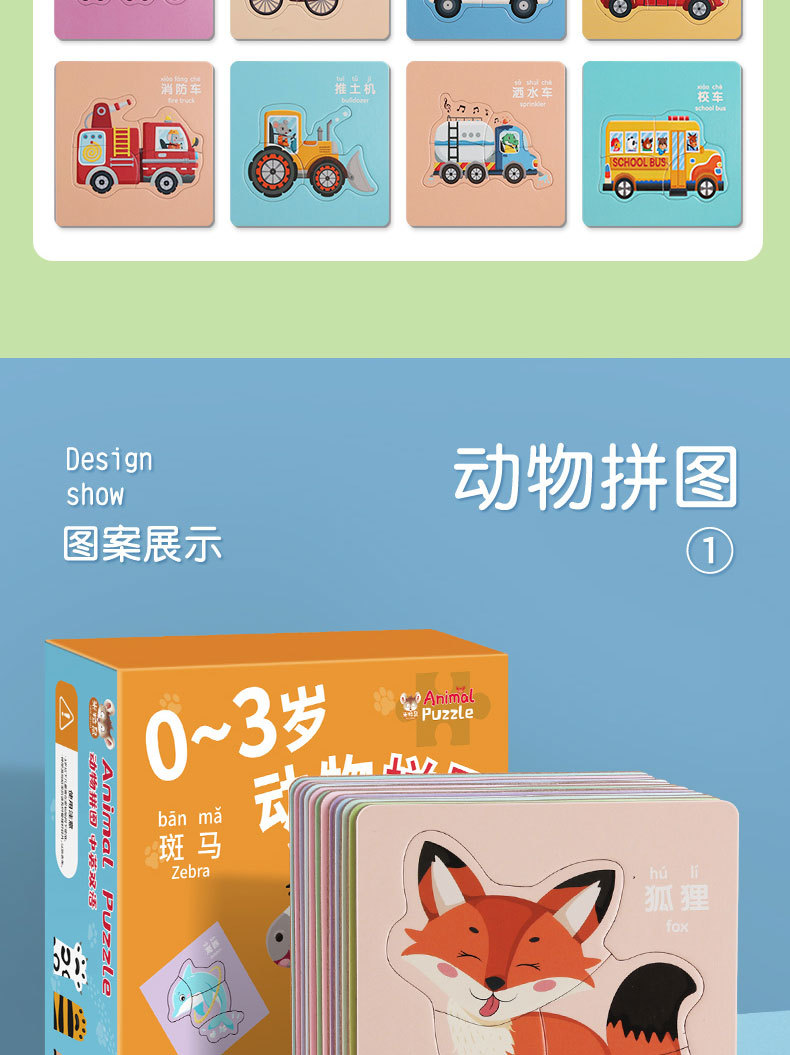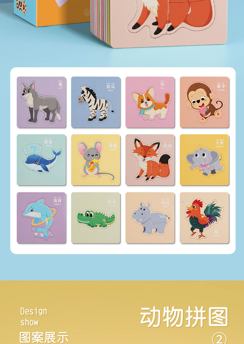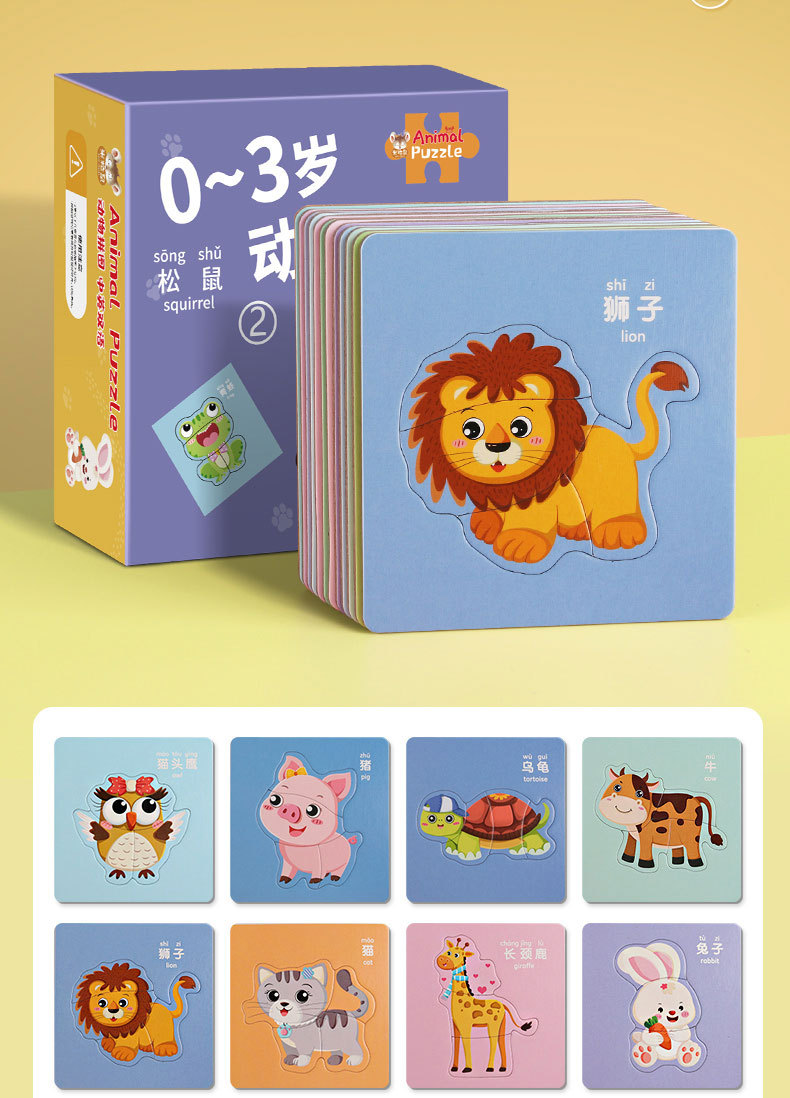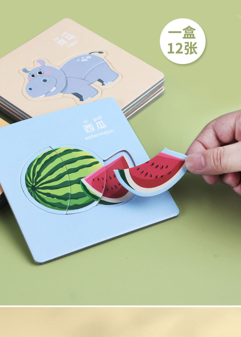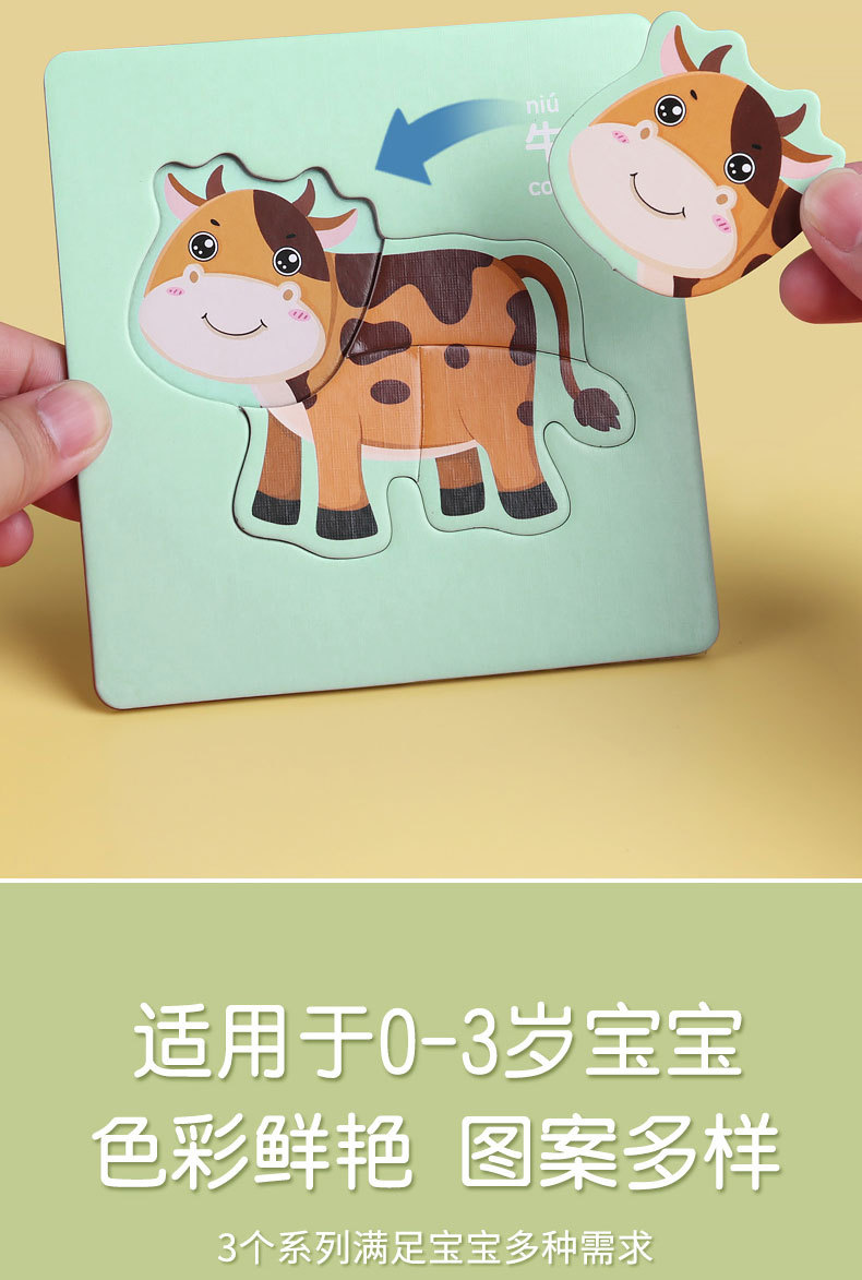 23.8任选3件 儿童动物拼图益智宝宝幼儿1平图入门级2三早教男孩女孩玩具