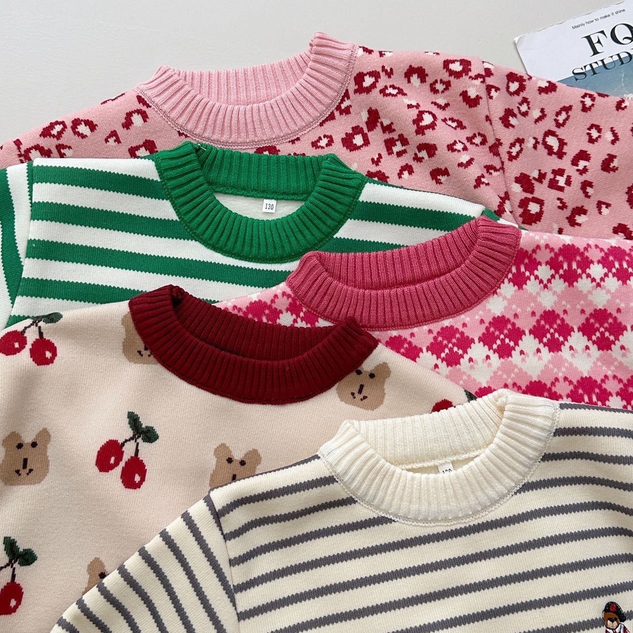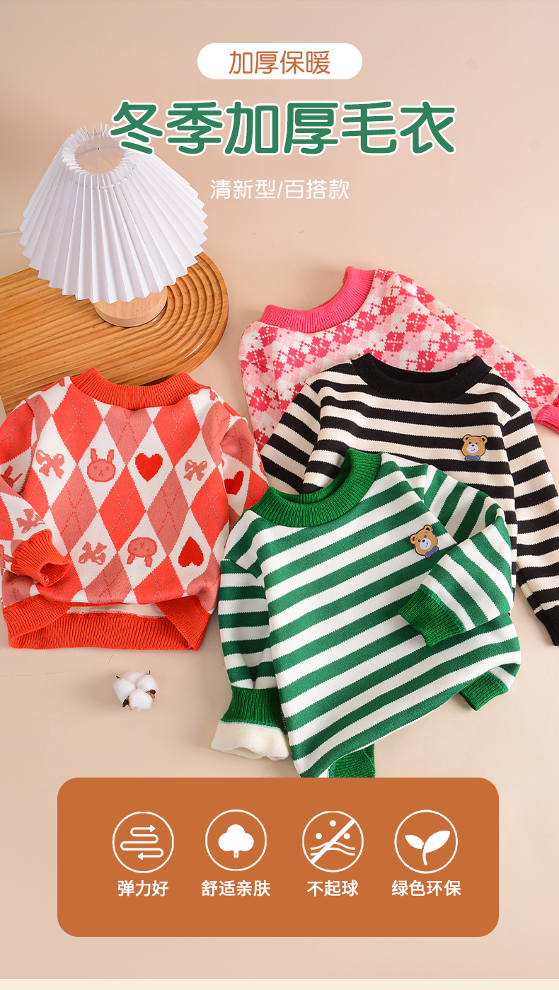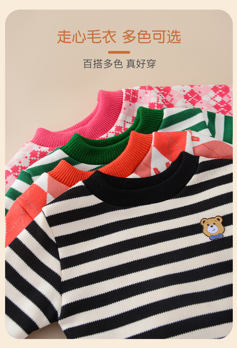 加绒的‼️最大可穿到150码!去年爆卖万单的新款‼️ 骨折价抢!儿童加绒毛衣 真的超值❗️👍👍 ✅各种花色🉑选,拼色领口凸显层次,出门上街回头率满满~ ✅可爱的卡通小熊刺绣设计,有草莓樱桃小图案,还有条纹图案,活力可爱值UP~ ✅面料柔软舒适,一体绒细绒毛工艺不会掉绒 真的要毫不犹豫自留了,毕竟福利款不是每天都有的哦……