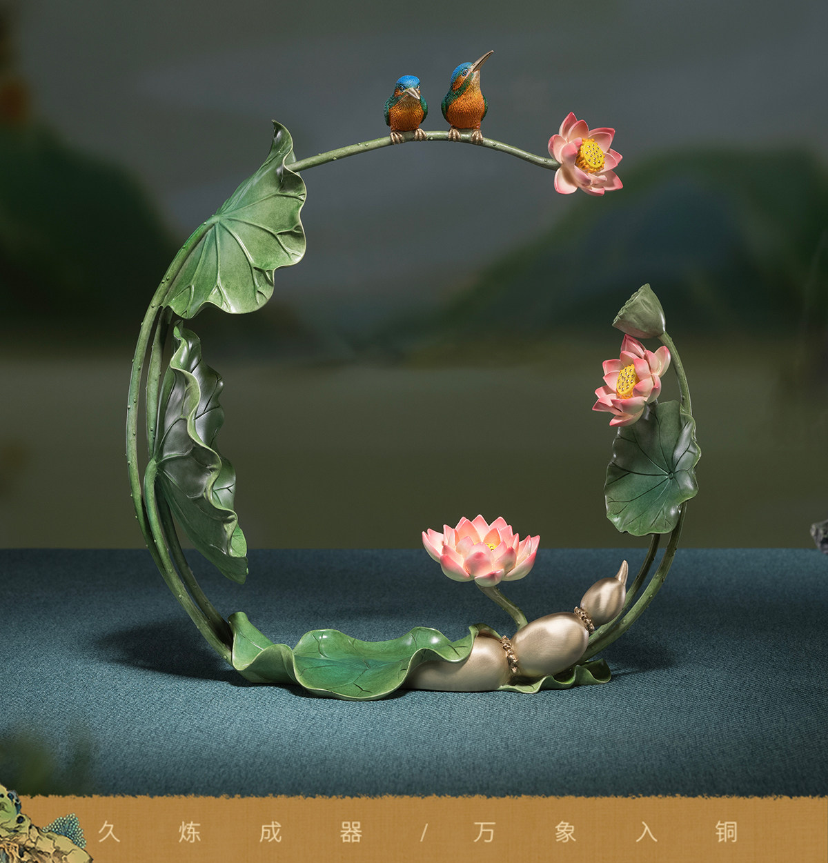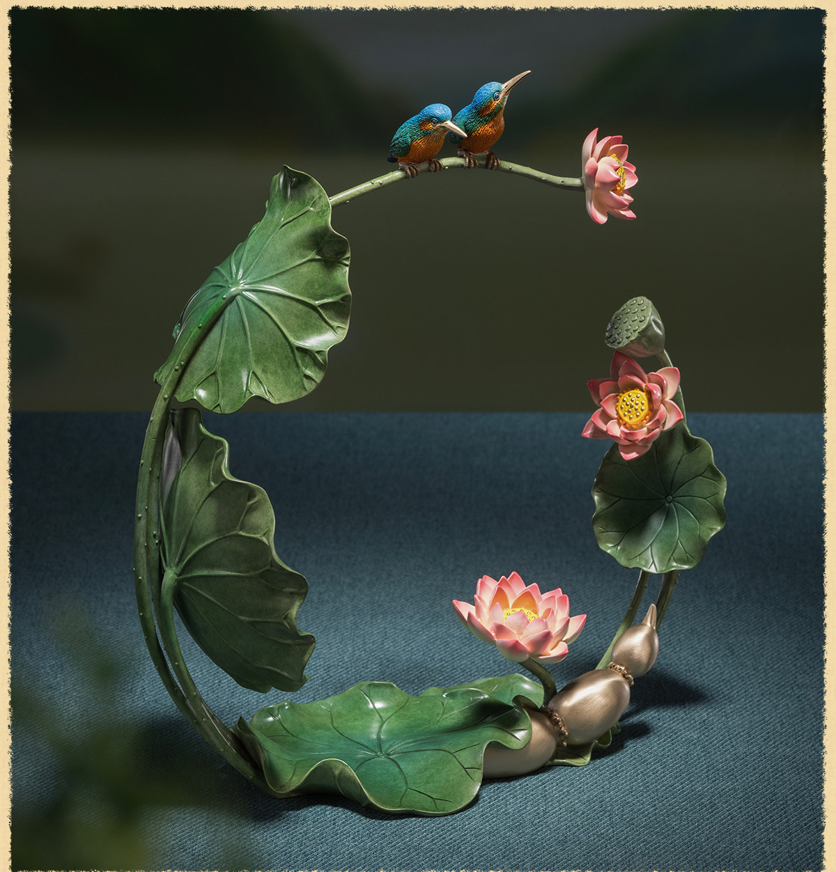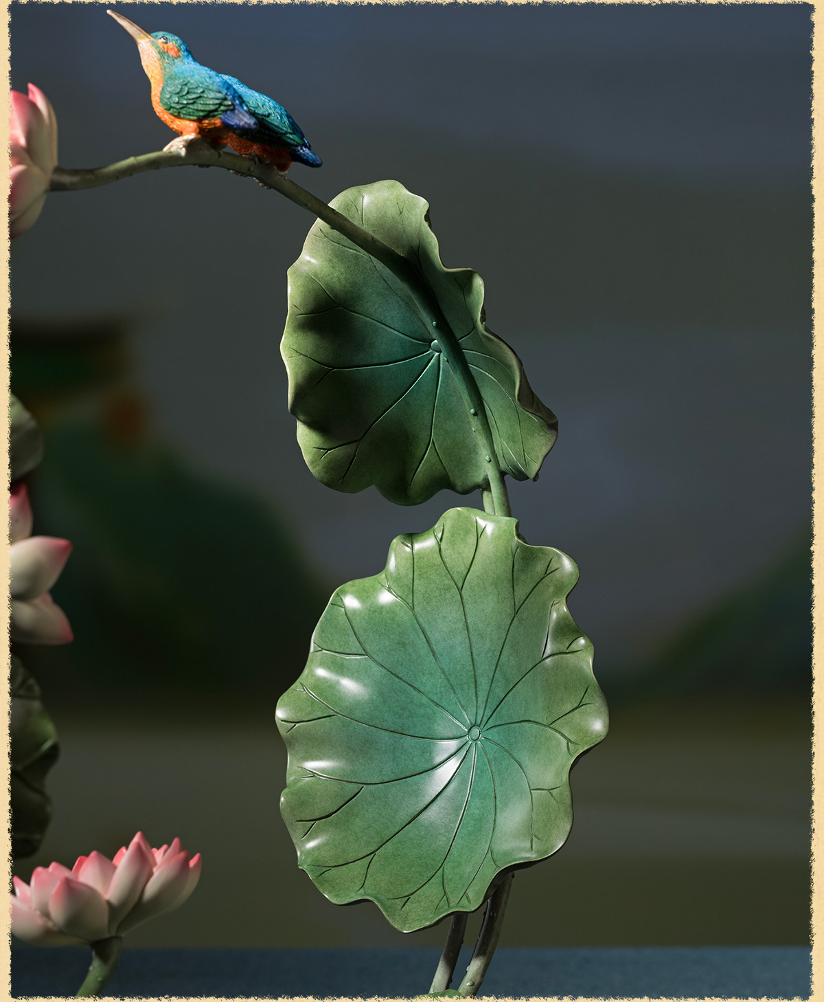 铜师傅《夏日荷韵》客厅桌面铜翠鸟荷花摆件 家居装饰工艺品