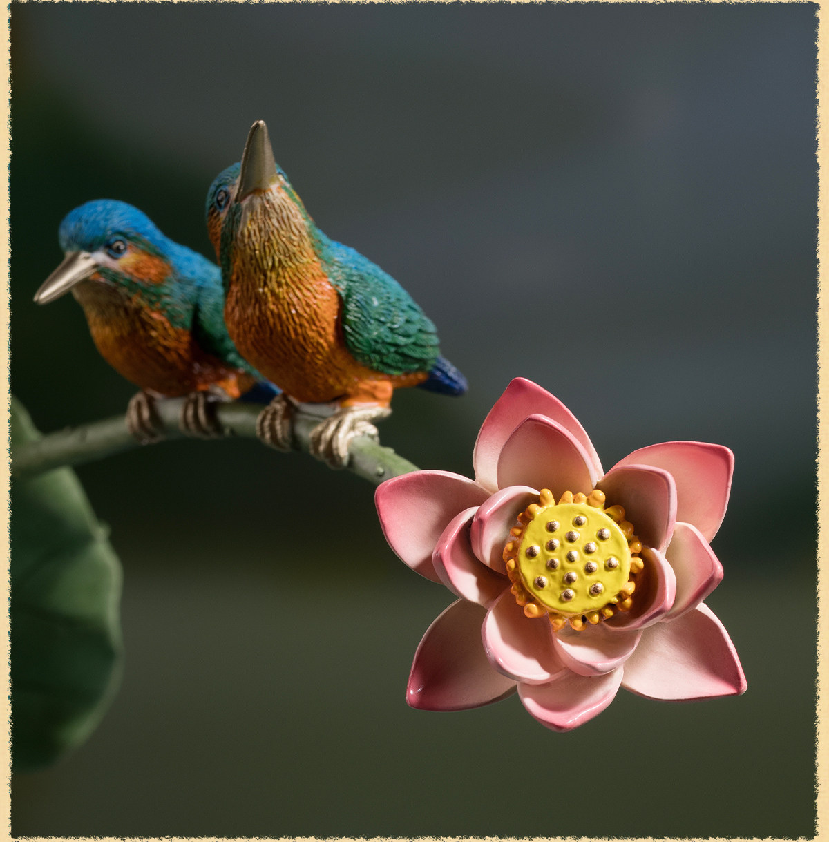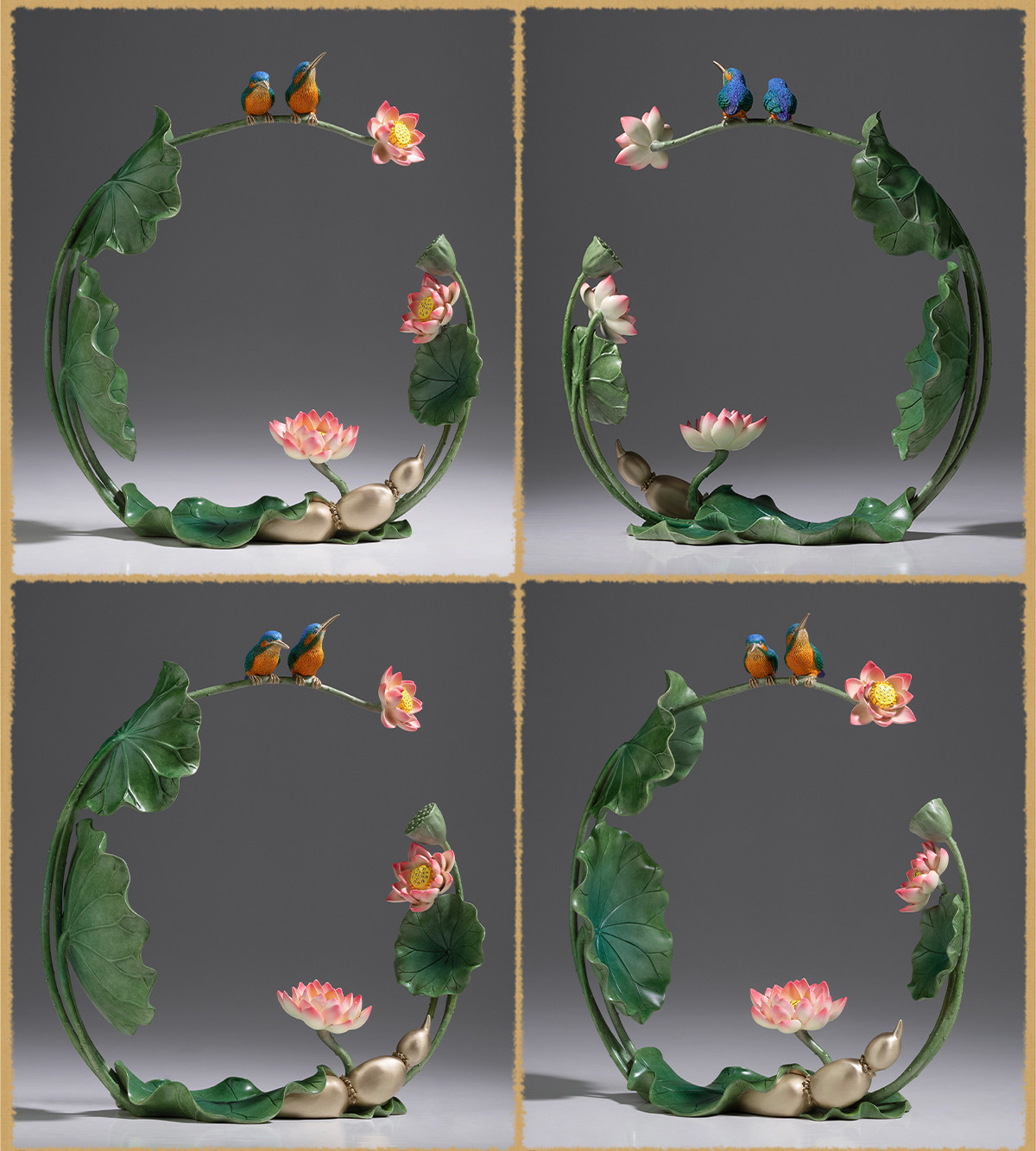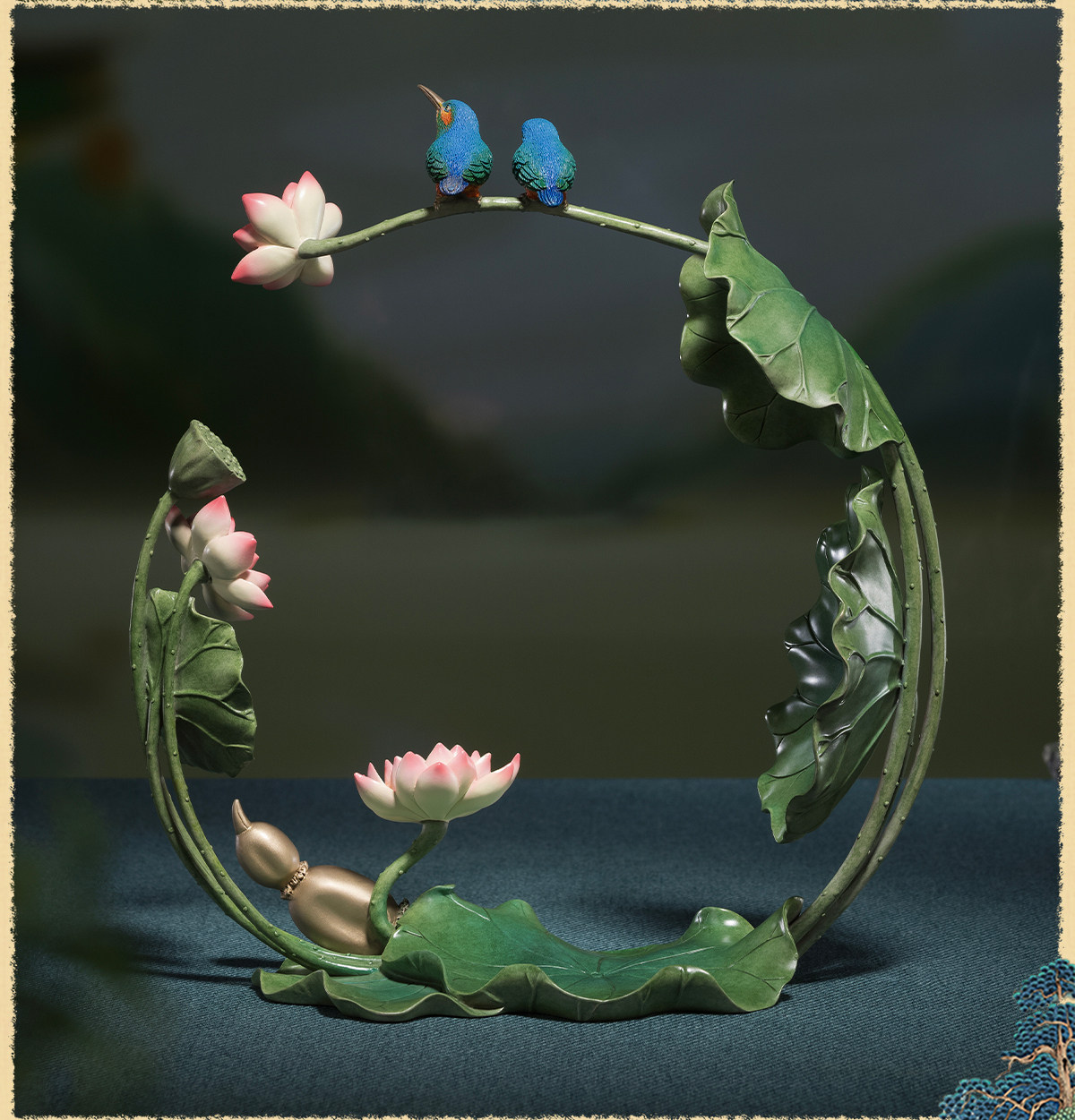 铜师傅《夏日荷韵》客厅桌面铜翠鸟荷花摆件 家居装饰工艺品