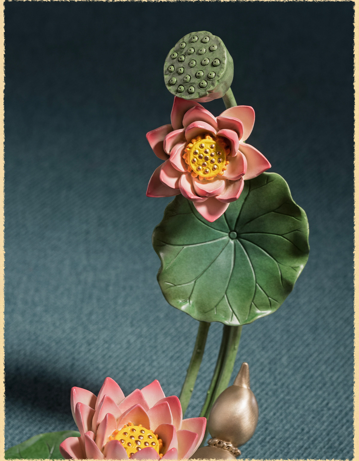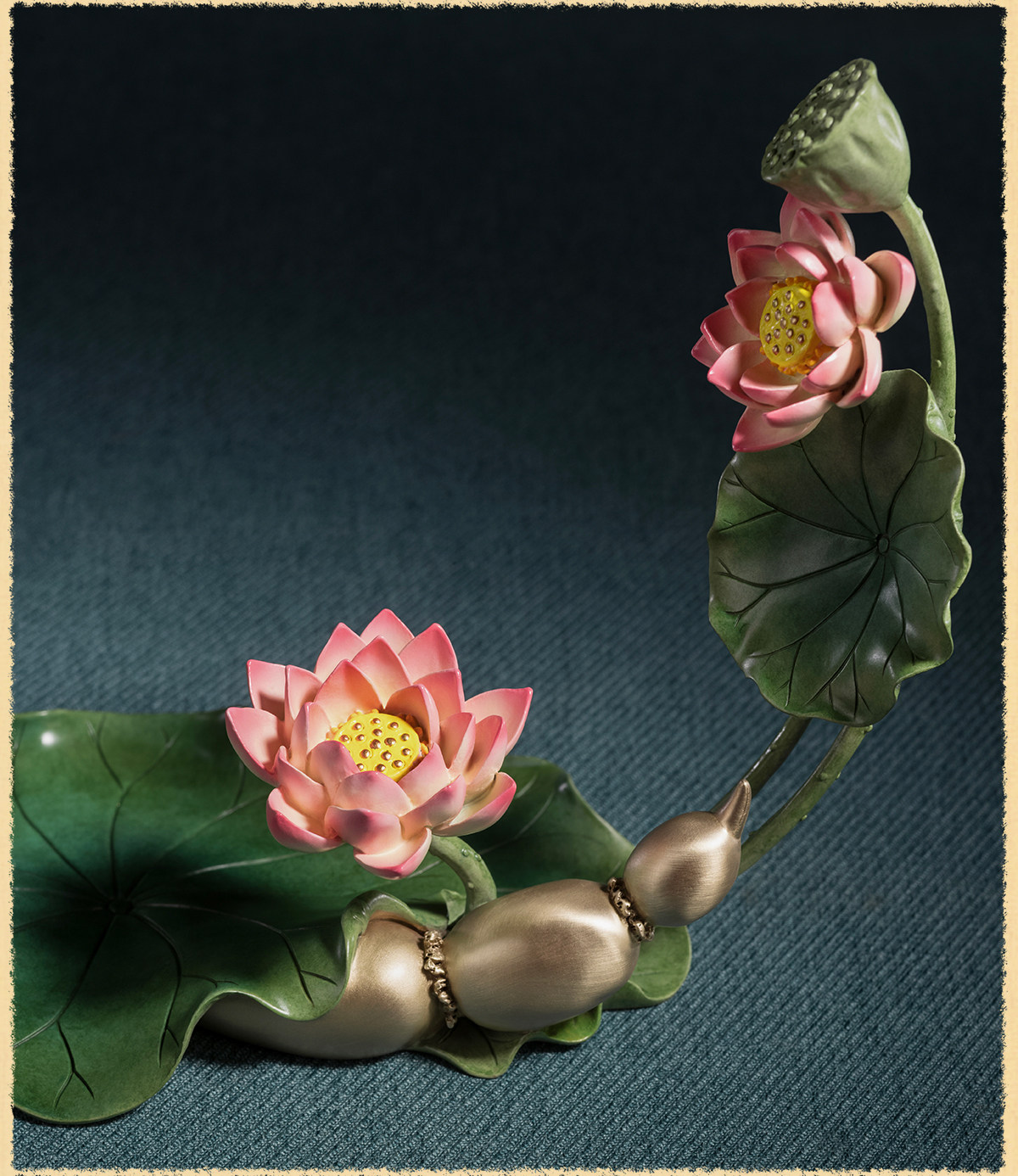 铜师傅《荷花笔筒》客厅书房铜摆件 家居装饰工艺品 老师礼物
