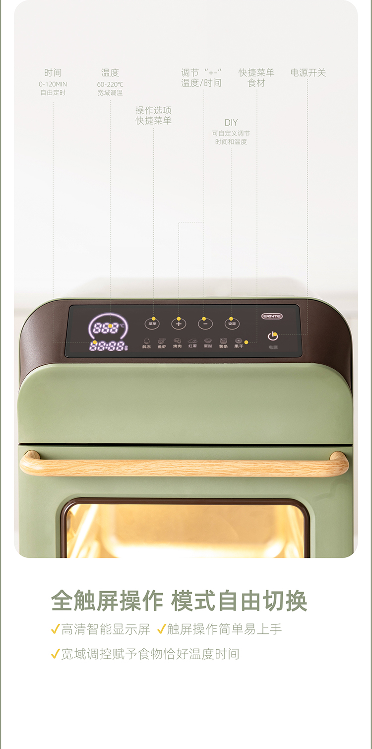 ERNTE昂特空气炸烤箱家用小型烘焙多功能全自动空气炸锅电烤箱