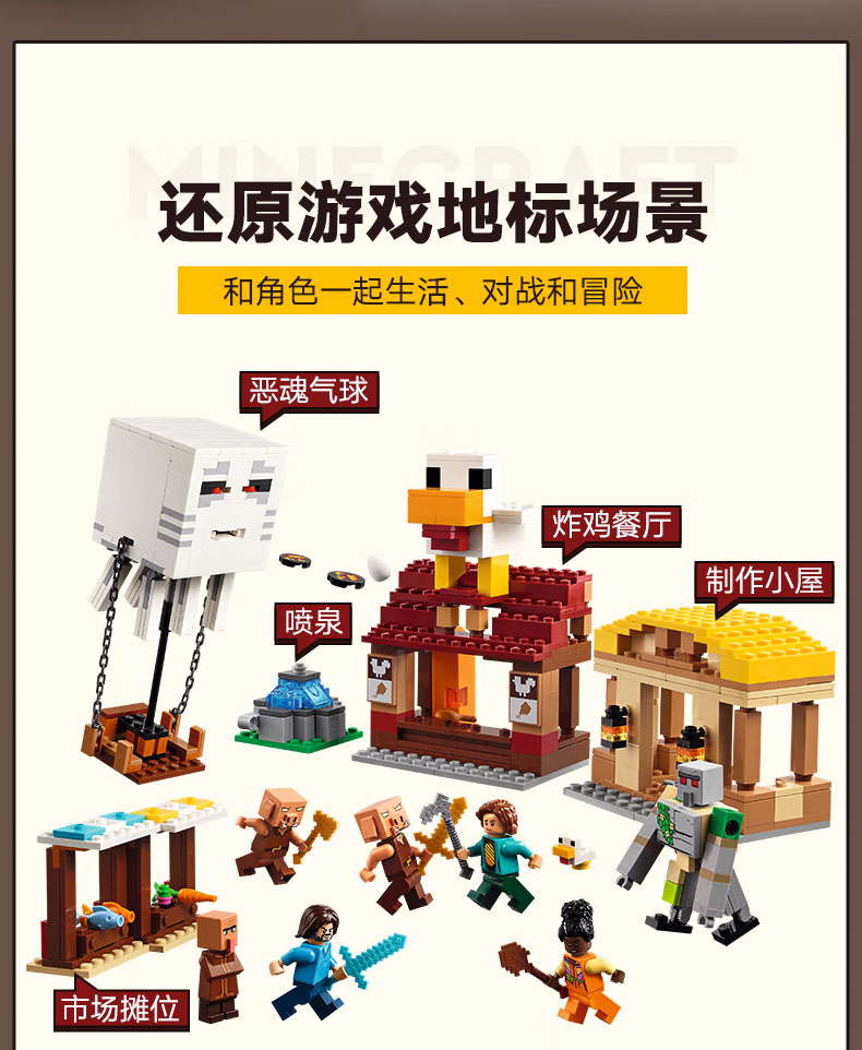 乐高积木我的世界恶魂气球村庄攻袭L21273