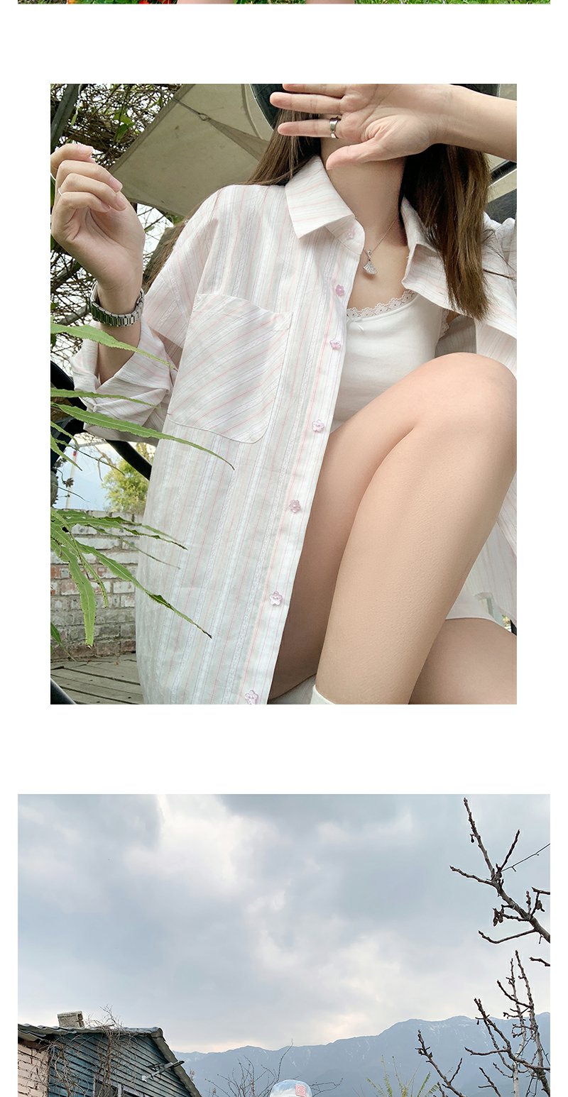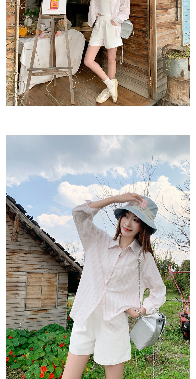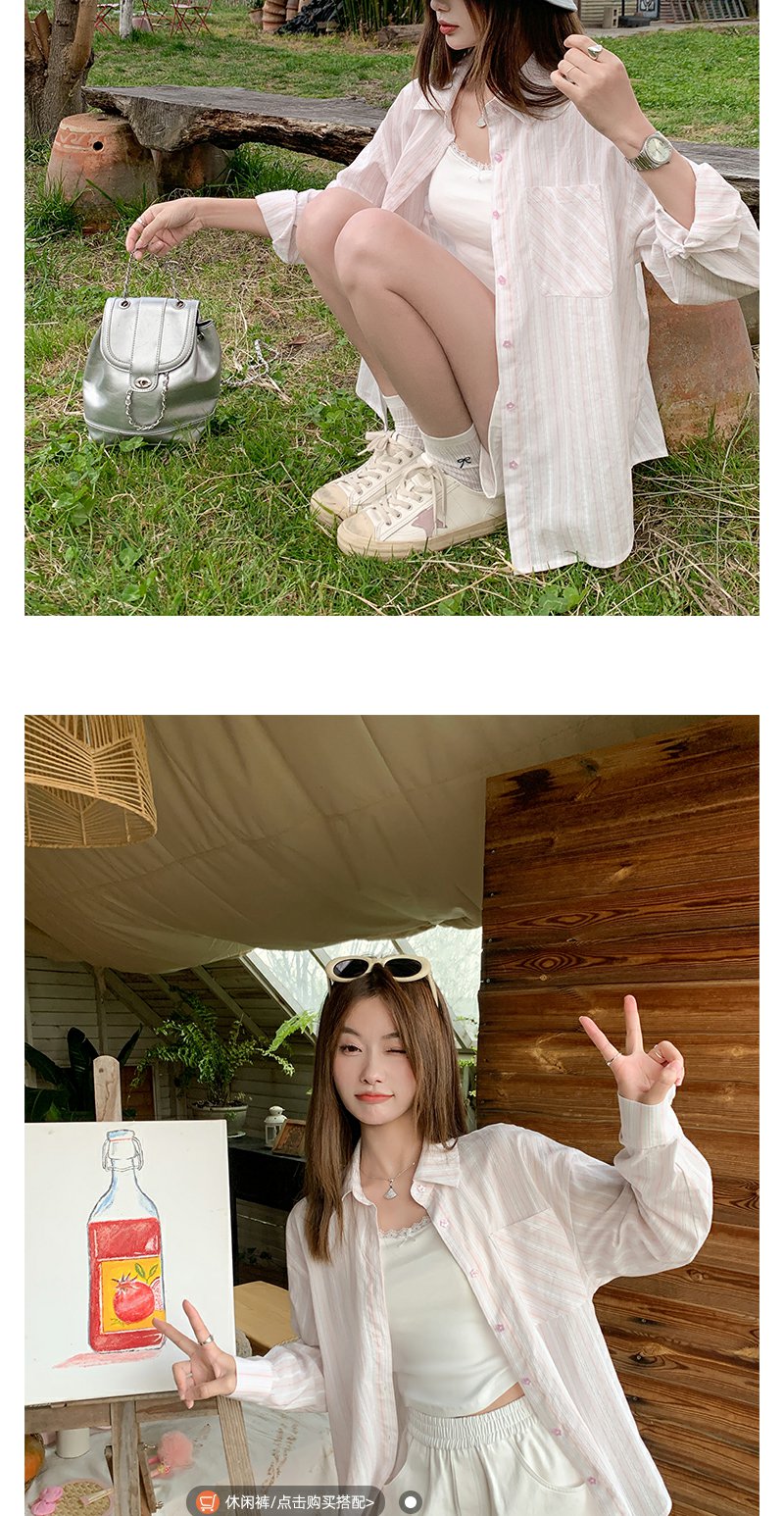 <曾小咸推荐>慵懒休闲粉色条纹宽松防晒长袖衬衫