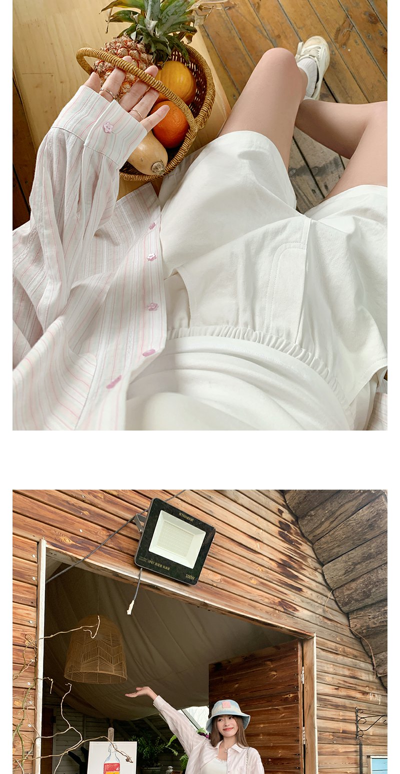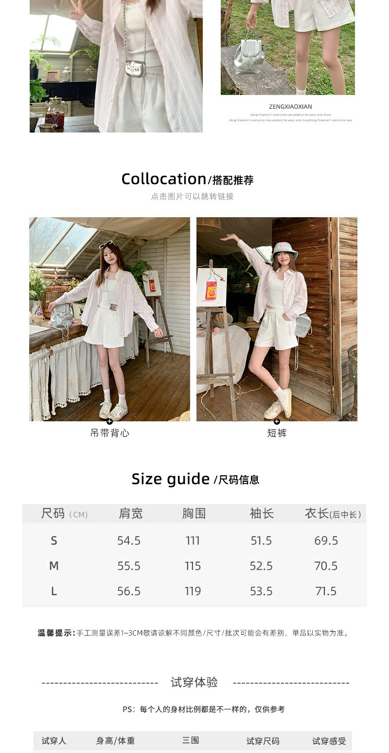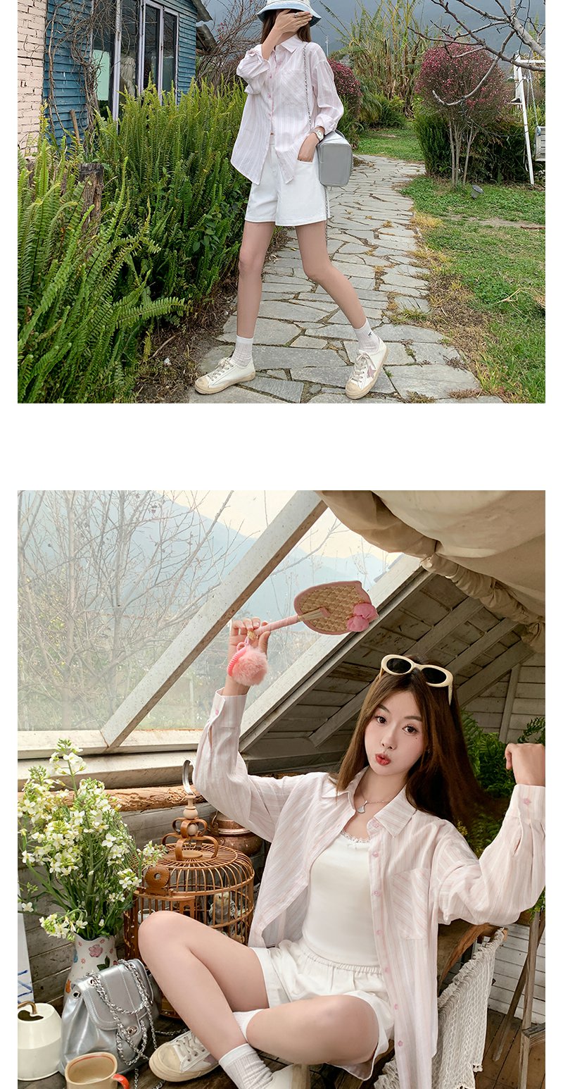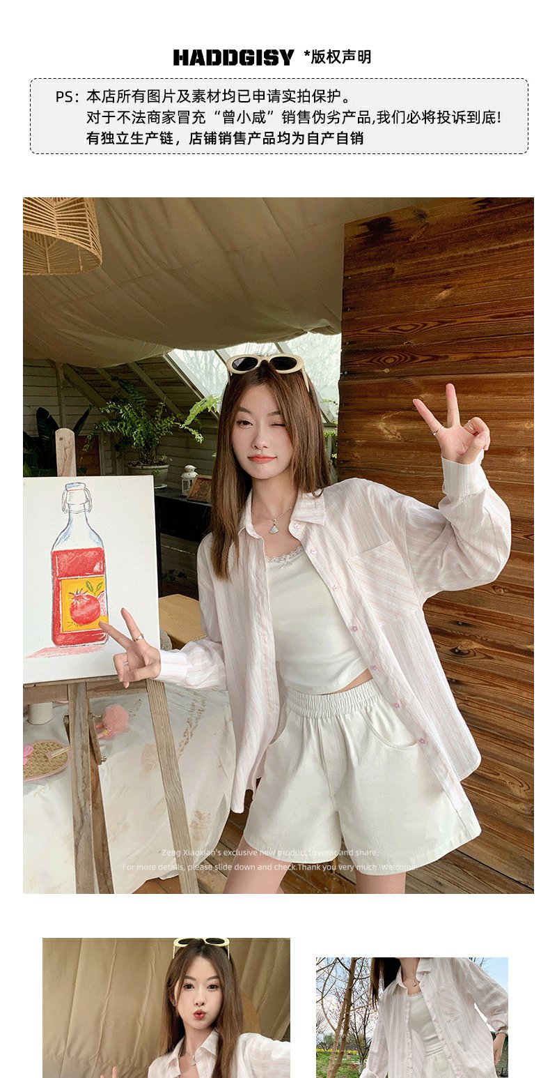 <曾小咸推荐>慵懒休闲粉色条纹宽松防晒长袖衬衫