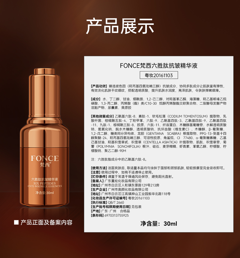 【梵西新品 119元任选3件】梵西六胜肽皱精华液面部舒缓抗皱收缩毛孔官方旗舰店正品 30ml/瓶