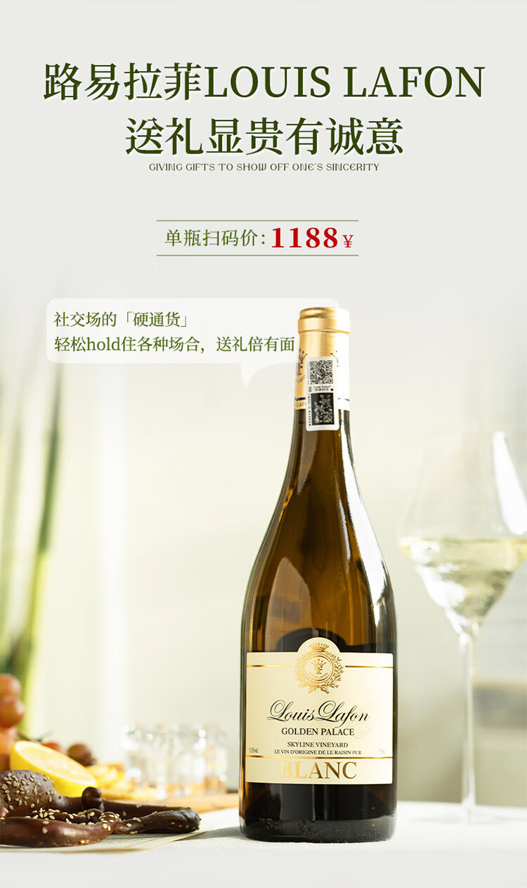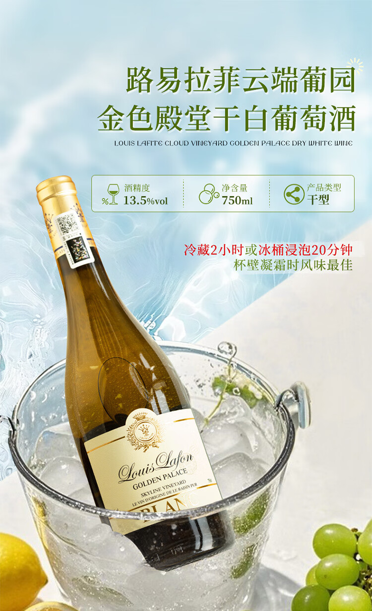 【酿酒大师亲酿作】路易拉菲云端葡园金色殿堂干白葡萄酒 清爽柑橘香气13.5%vol