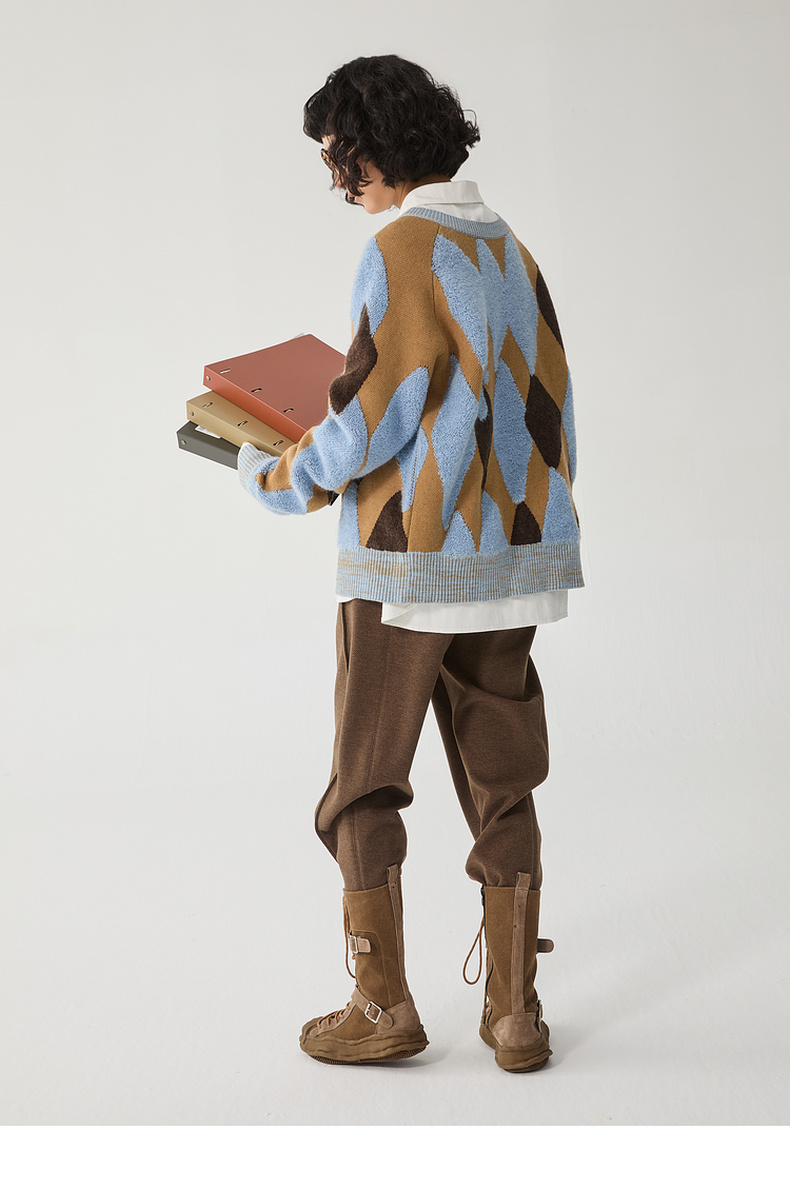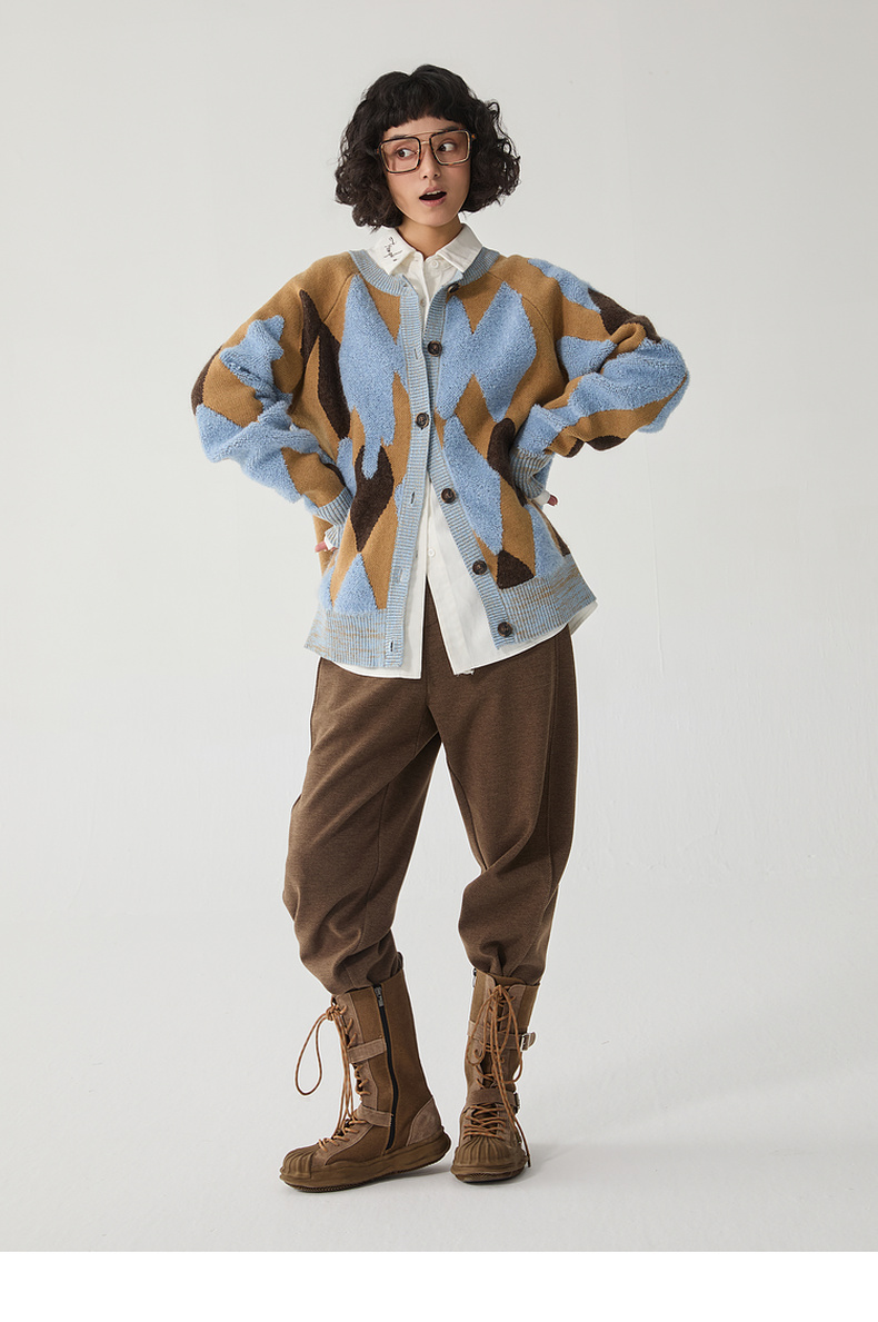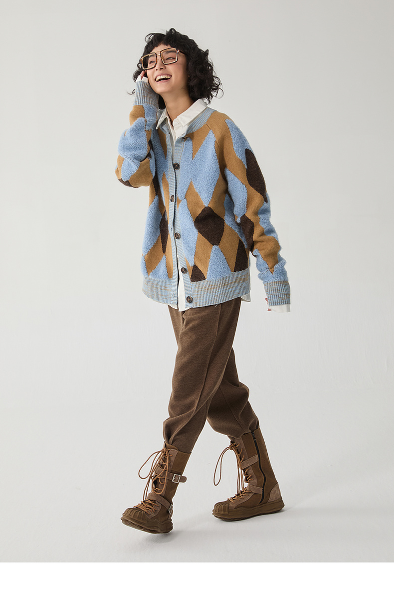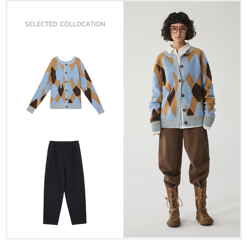 谜底圆领针织开衫女2024冬新品复古风百搭短款加厚毛衣244MZ1883
