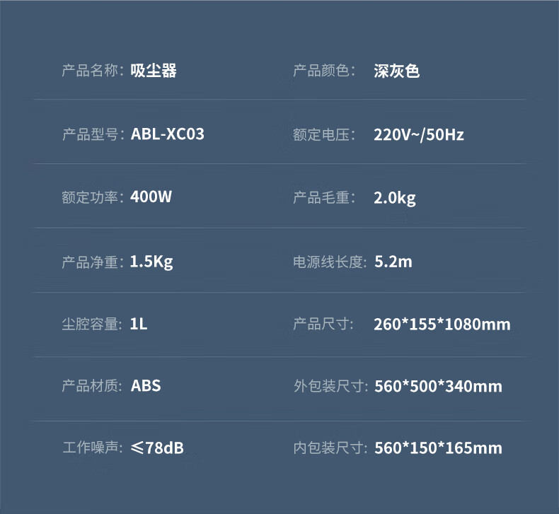 【小家电】Abereve艾贝丽有线吸尘器ABL-XC03 HF