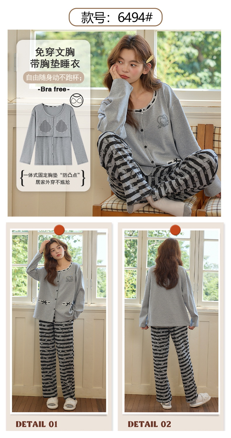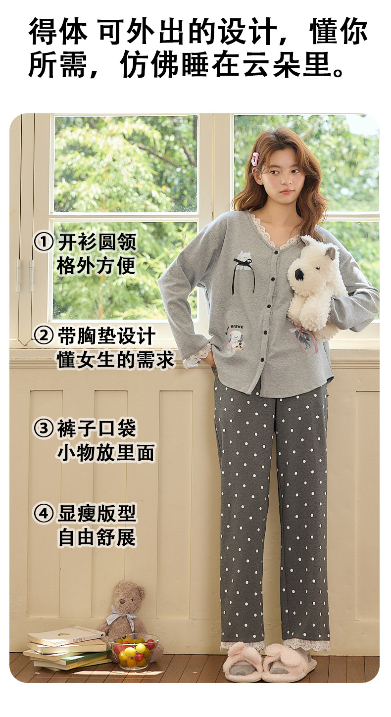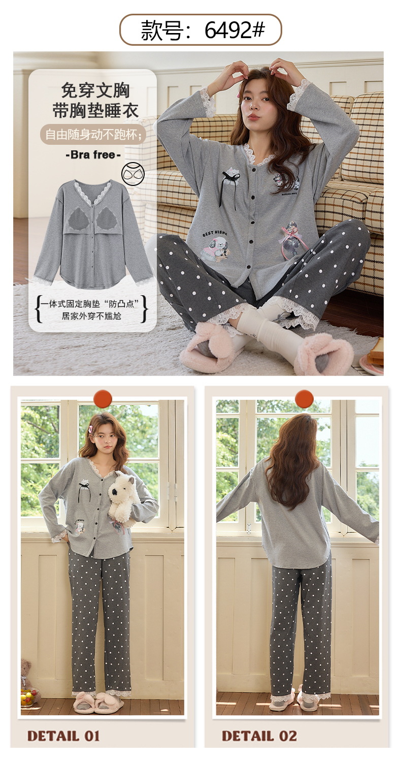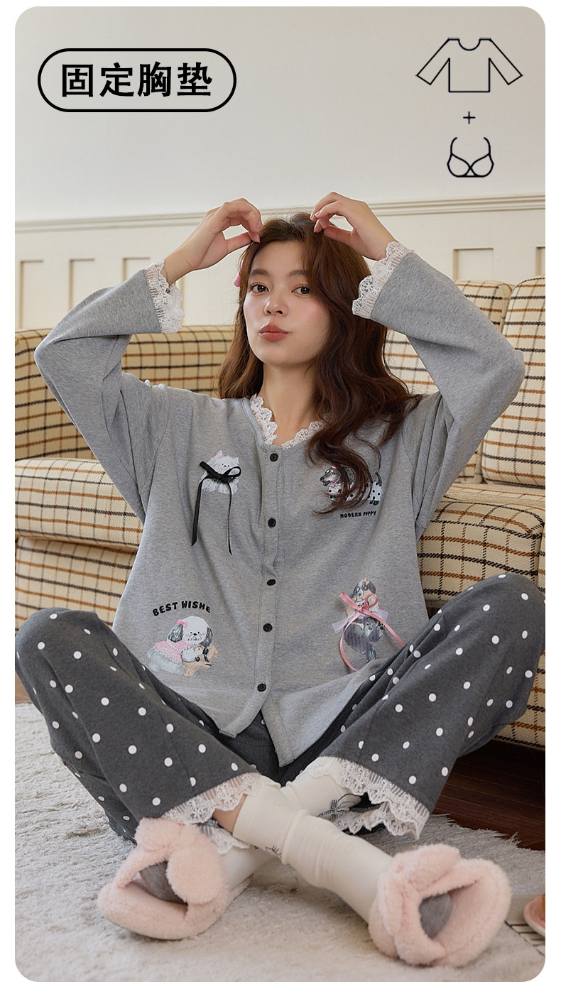 2025公主风长袖睡衣女秋季带胸垫纯棉卡通少女学生冬天开衫家居服