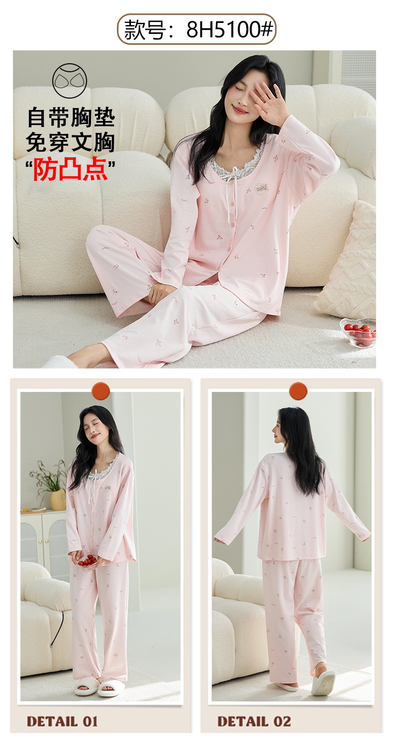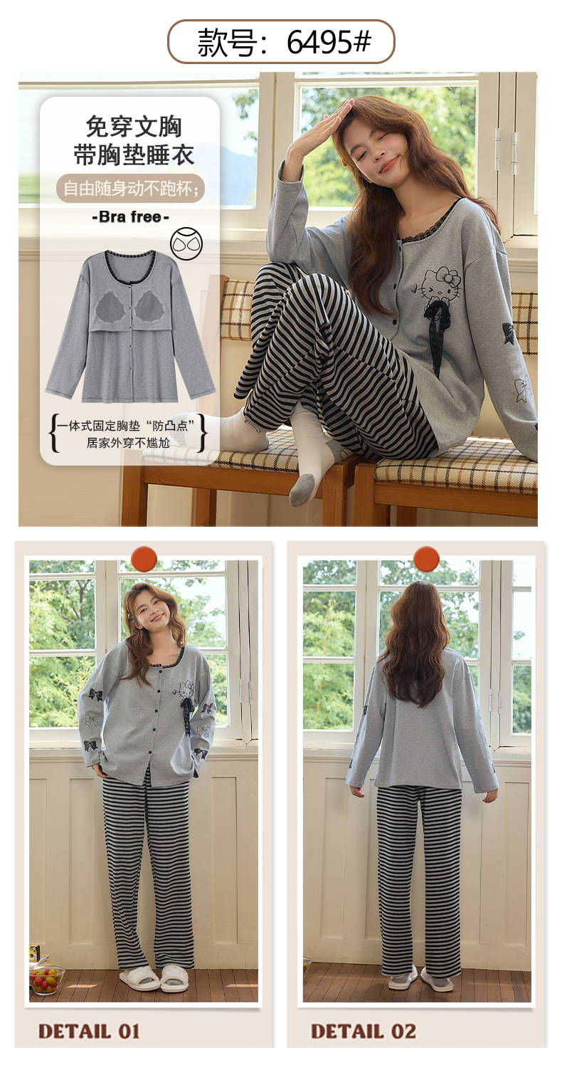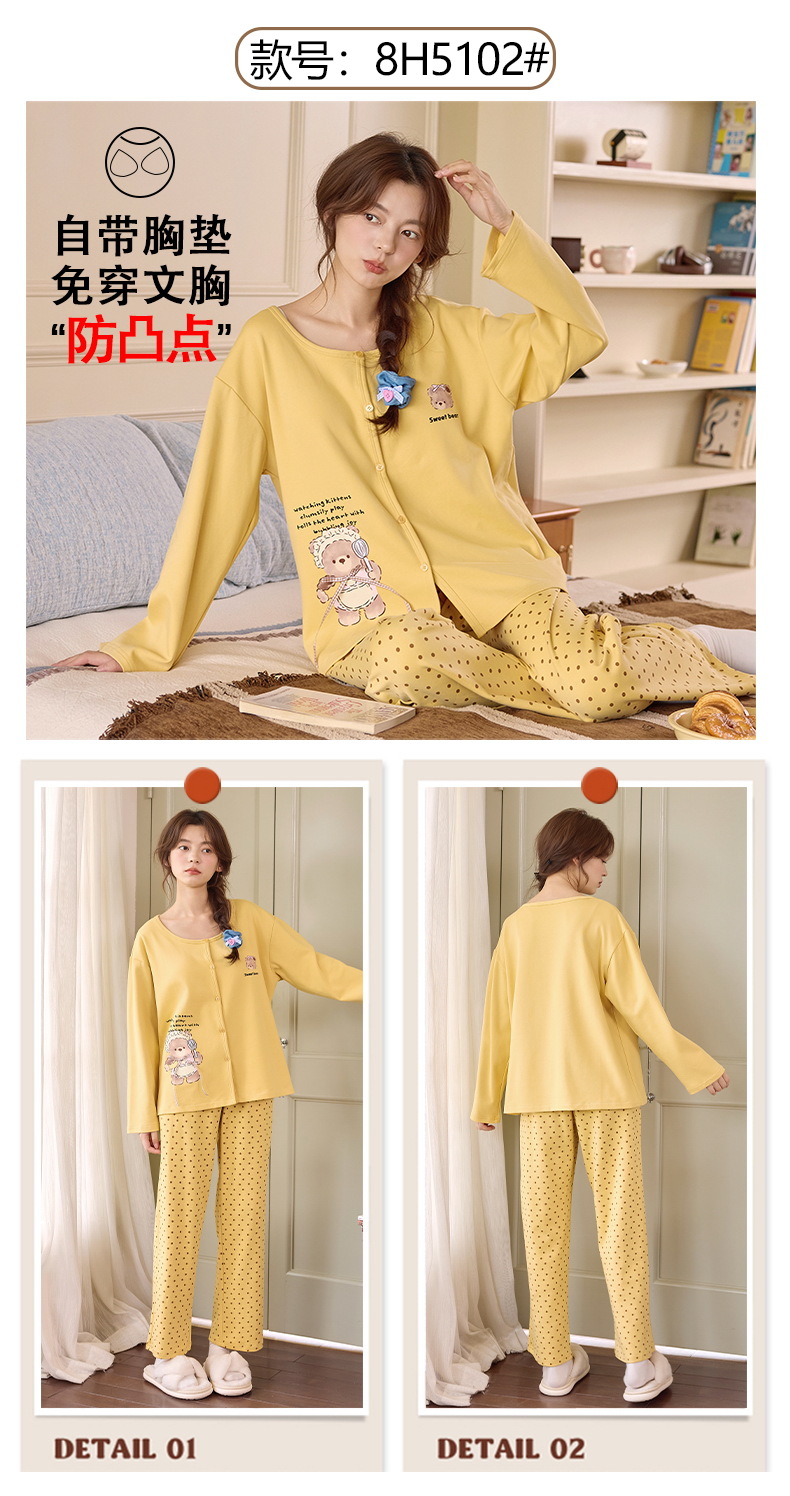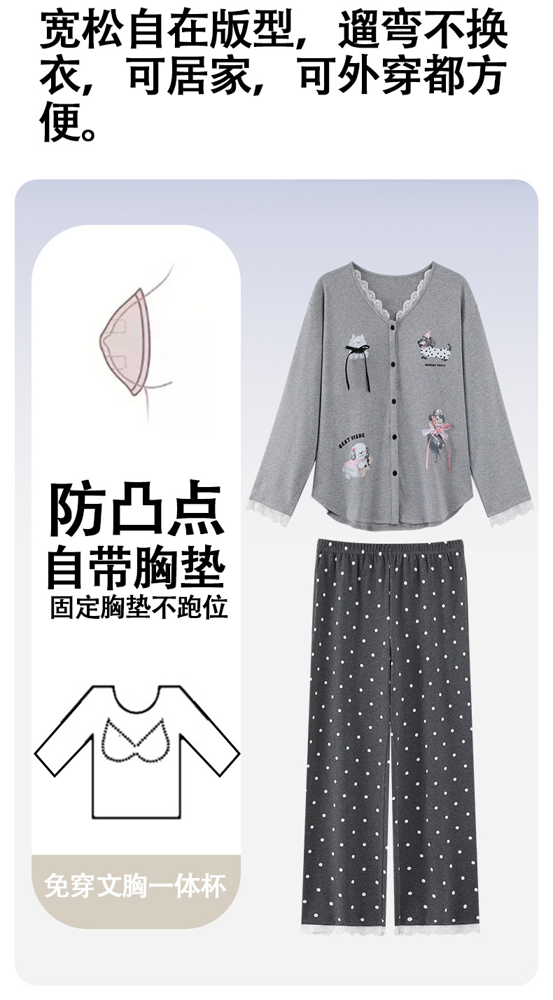 2025公主风长袖睡衣女秋季带胸垫纯棉卡通少女学生冬天开衫家居服