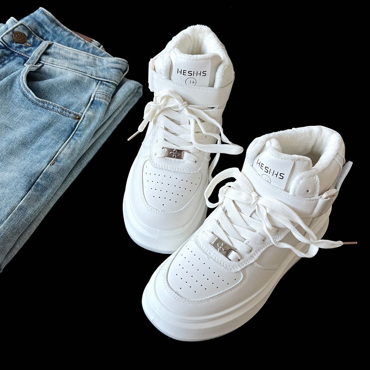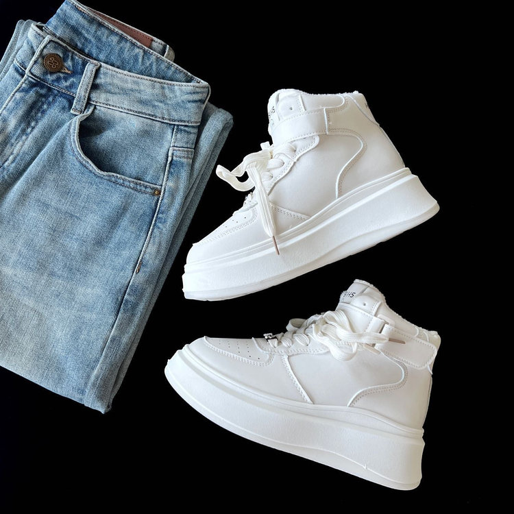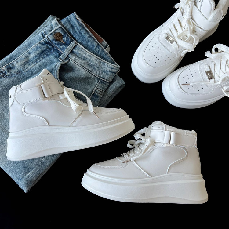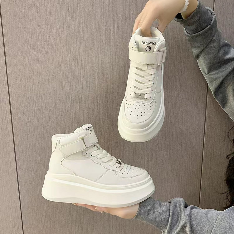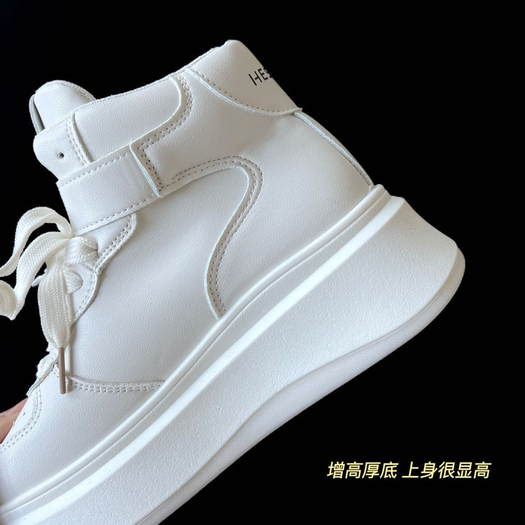 【健爪茵真皮高帮厚底小白鞋】✅5cm增高厚底,直接解锁“腿长一米八”直视感!!! ✅高弹柔韧橡胶防滑底,像踩棉花超软超舒适!-HFDJ