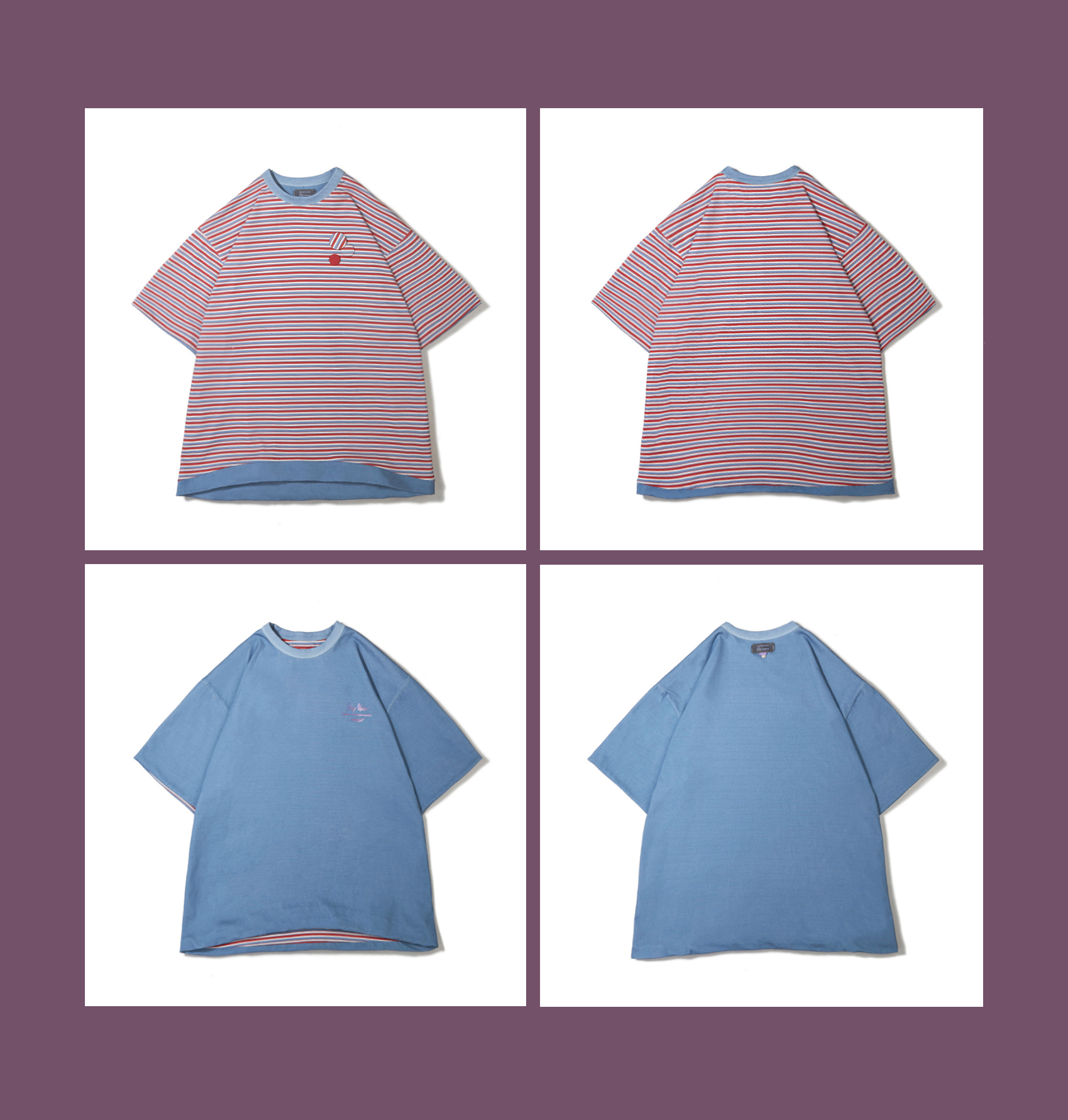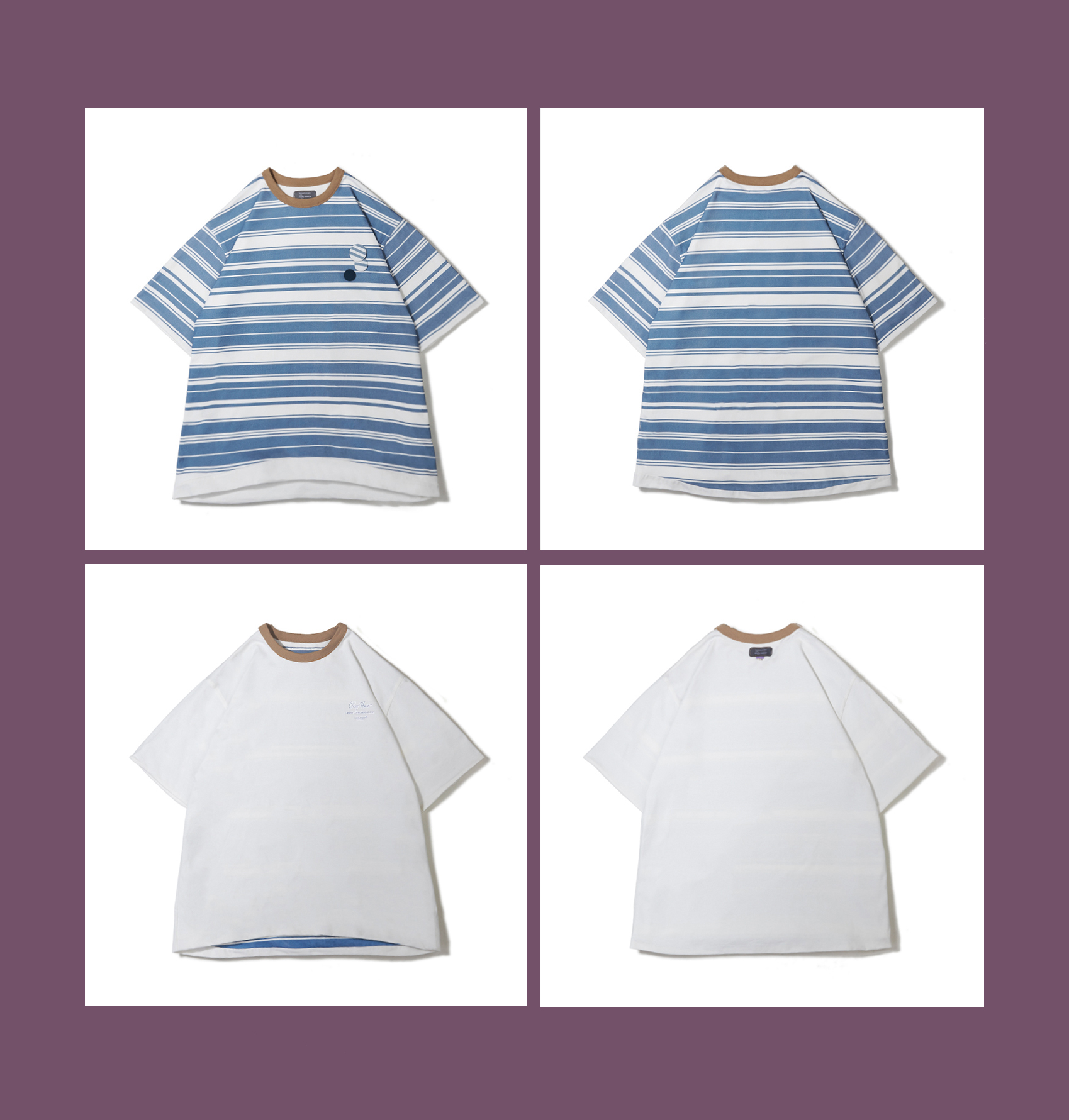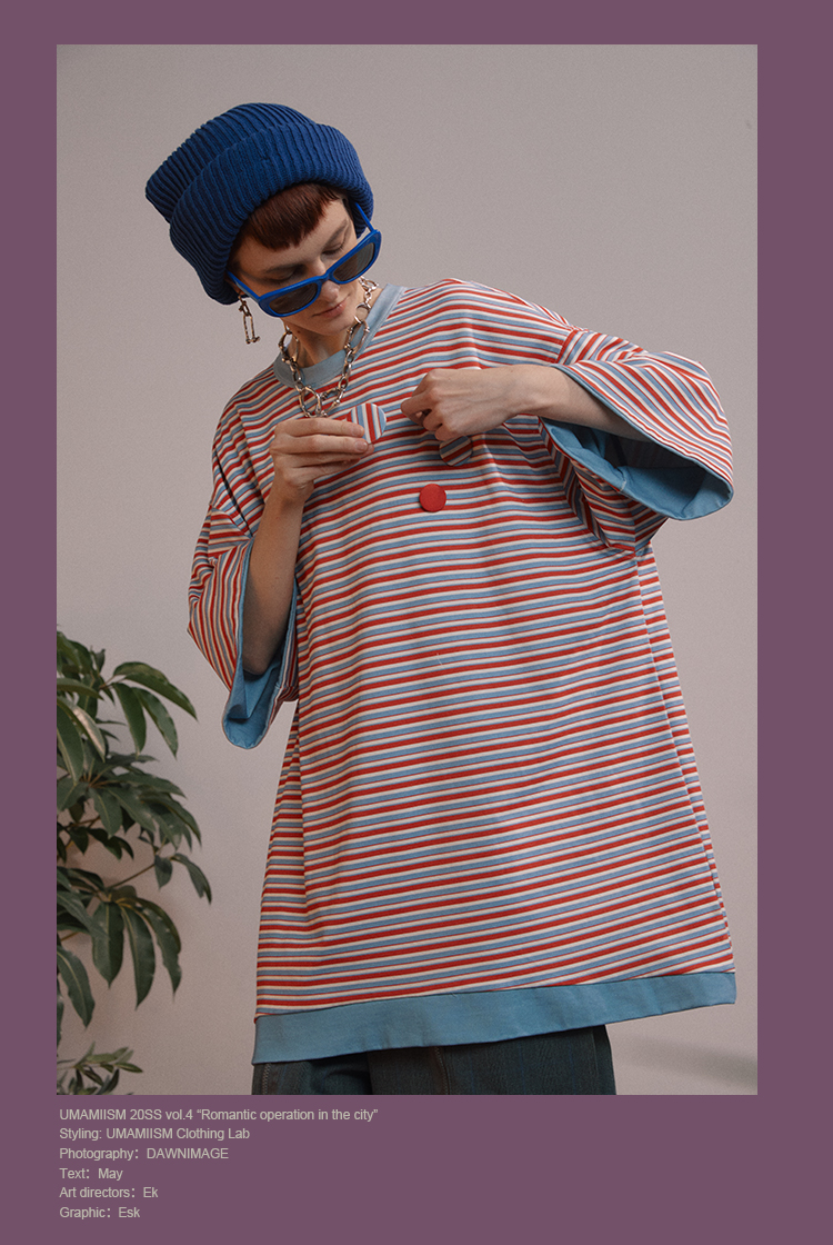 | 领型: 圆领 | 颜色: 雾霾蓝/玫红色,米白色/蓝条纹 |