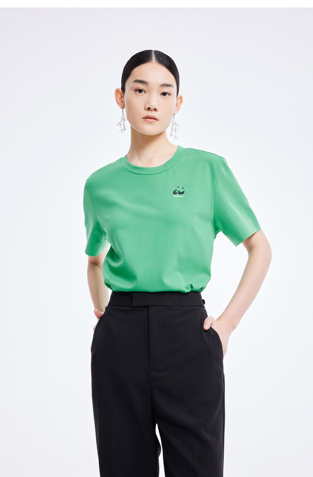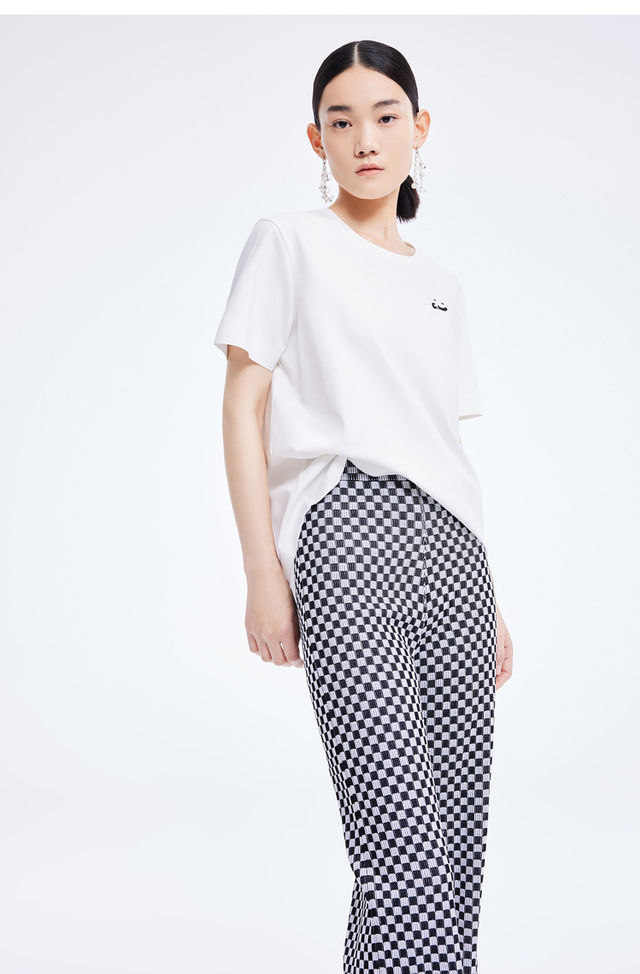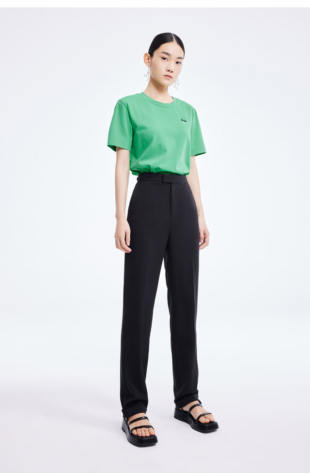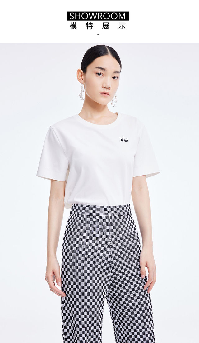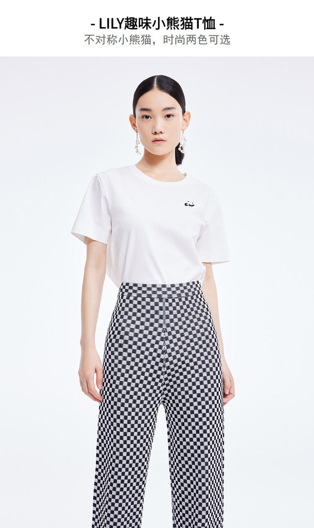 LILY2022夏新款女装时尚洋气不对称休闲圆领短袖T恤122200VT327