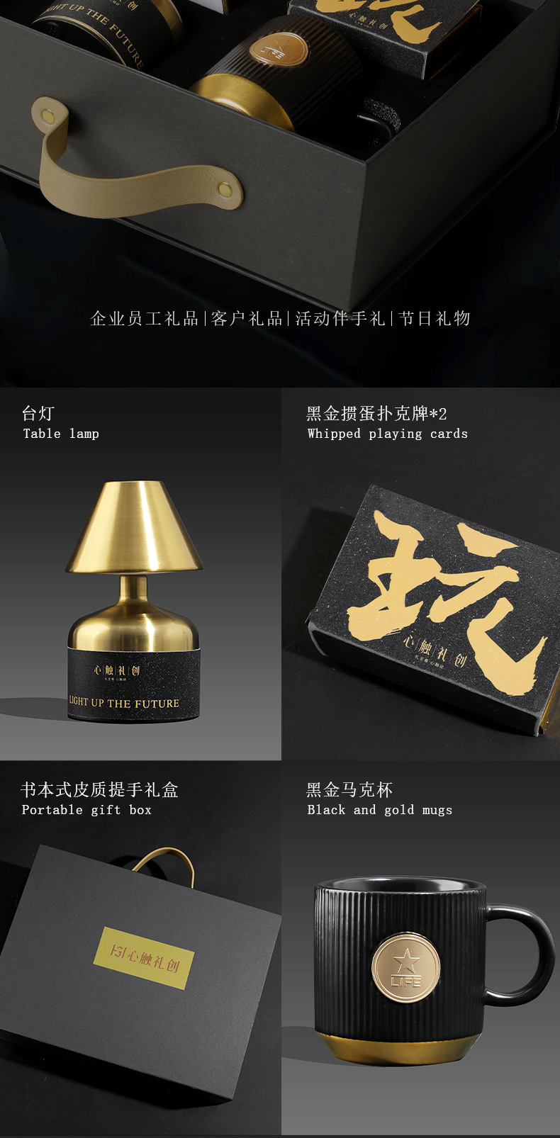 「高级感!心触礼创」商务礼盒黑金掼蛋送礼朋友聚会精致礼品盒台灯马克杯高级感礼物