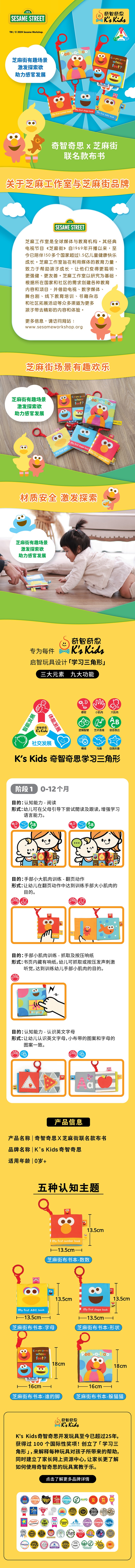 奇智奇思&芝麻街联名布书早教婴儿布艺啃咬撕不烂0-6个月宝宝玩具