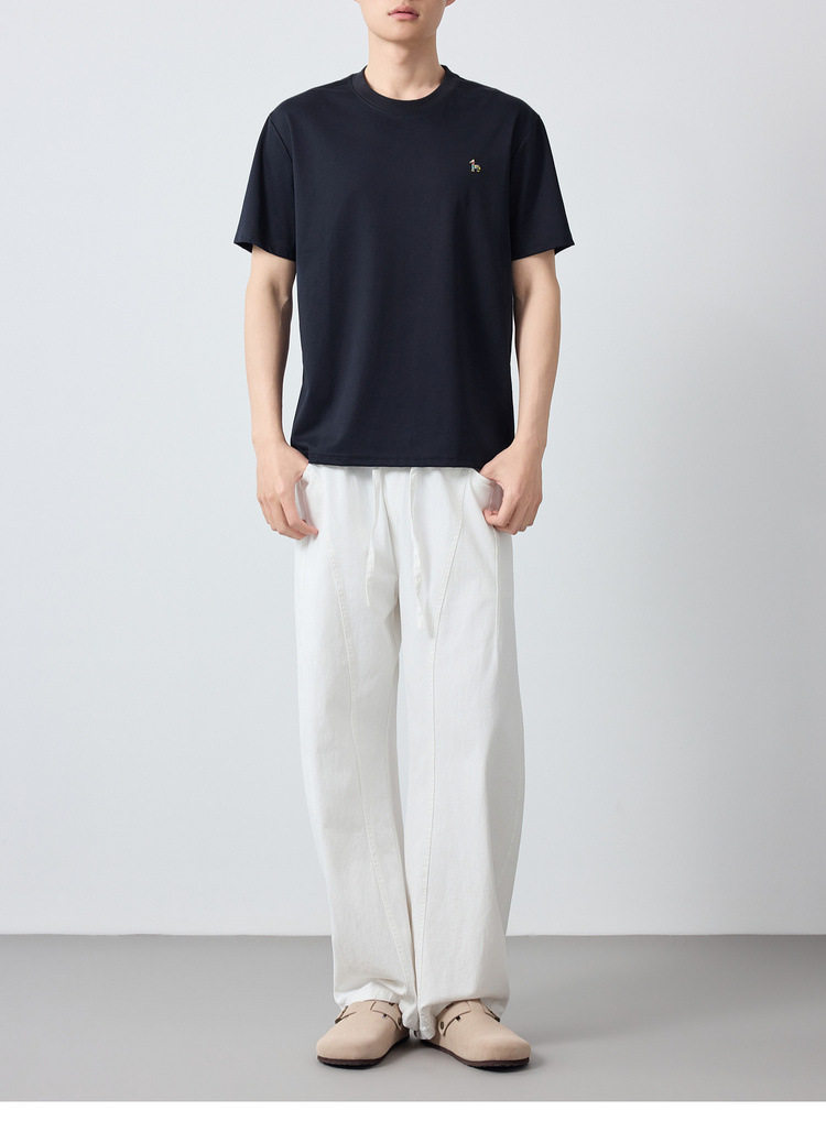 墨麦客男装高智通勤小马刺绣短袖男2026春新款圆领男士t恤75219.