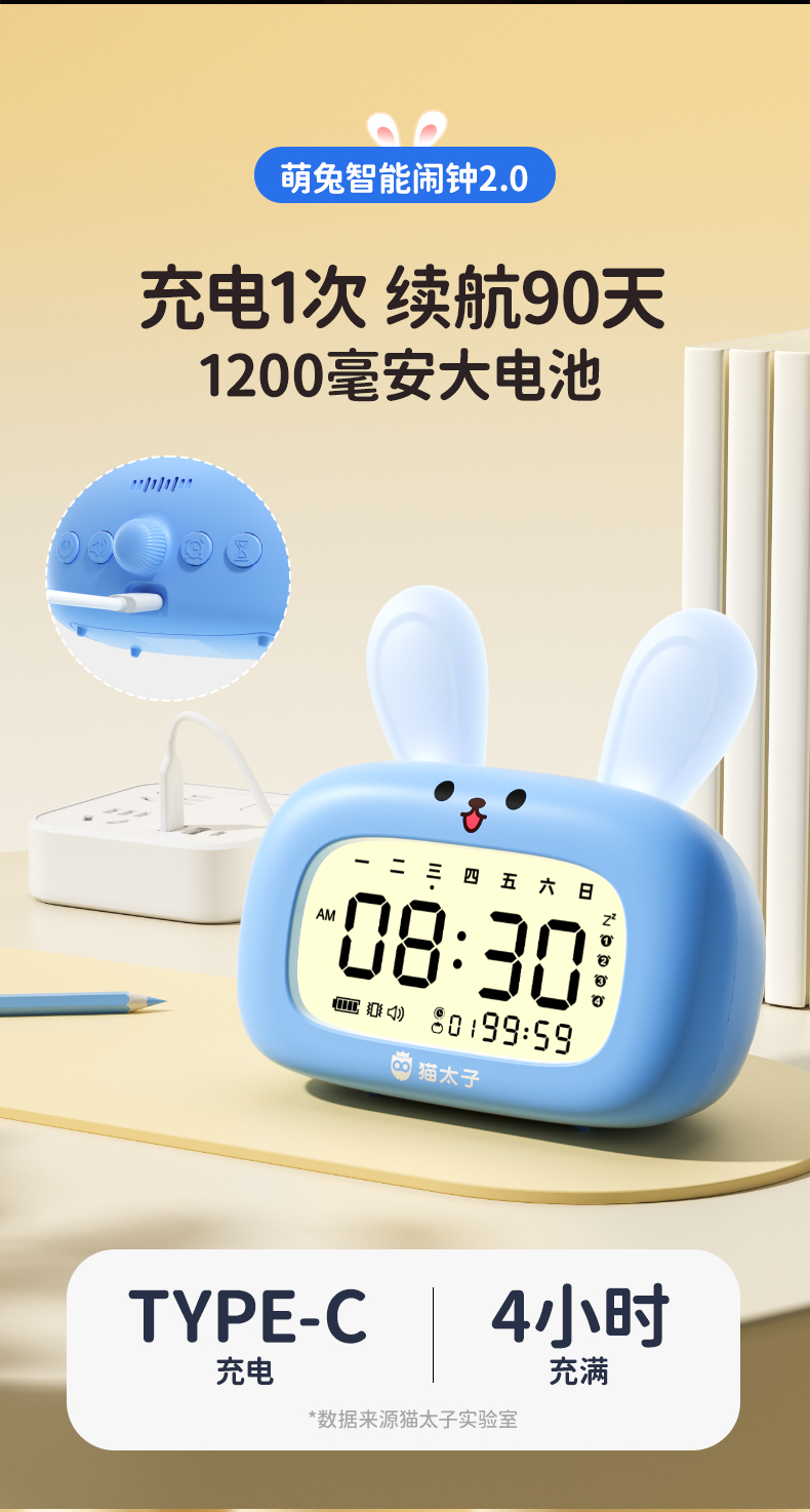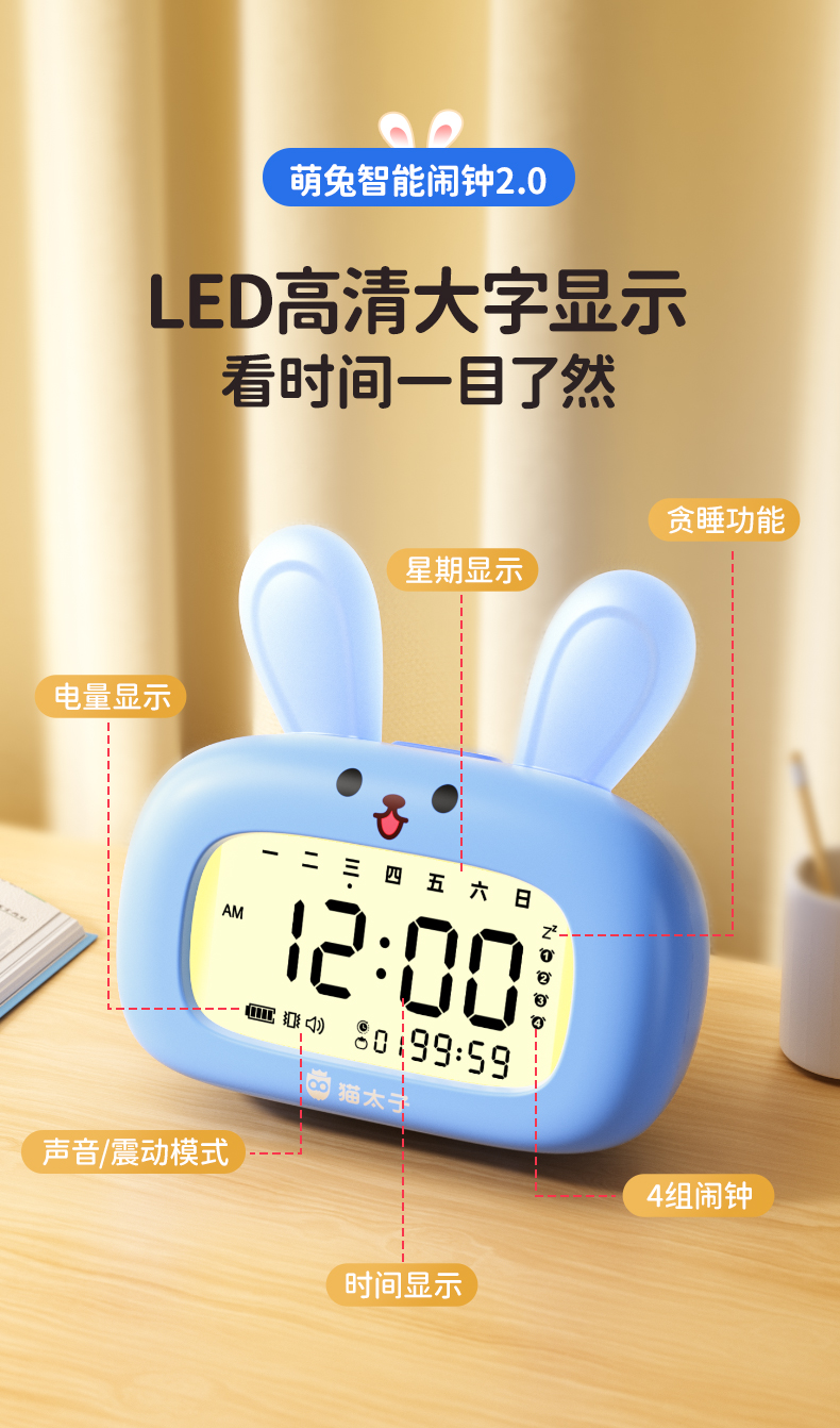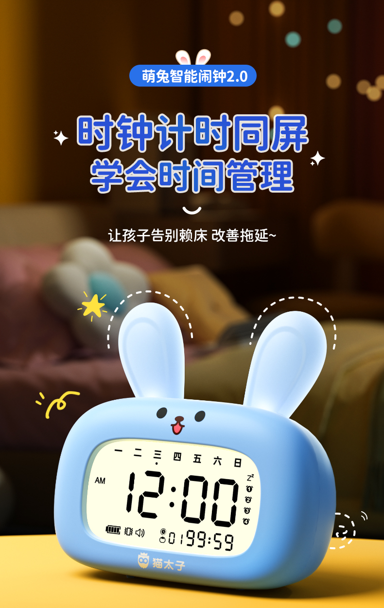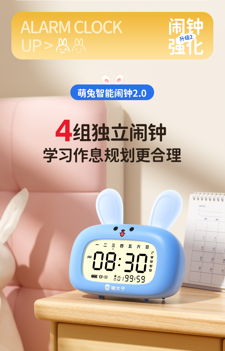 猫太子闹钟学生专用智能起床神器儿童高颜值时钟学习专用