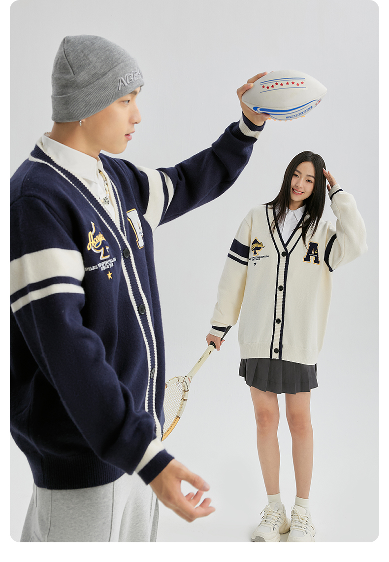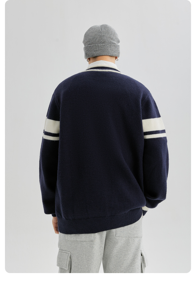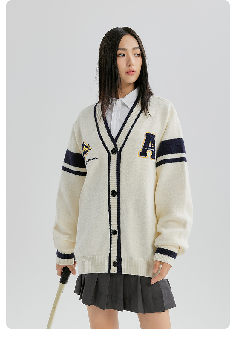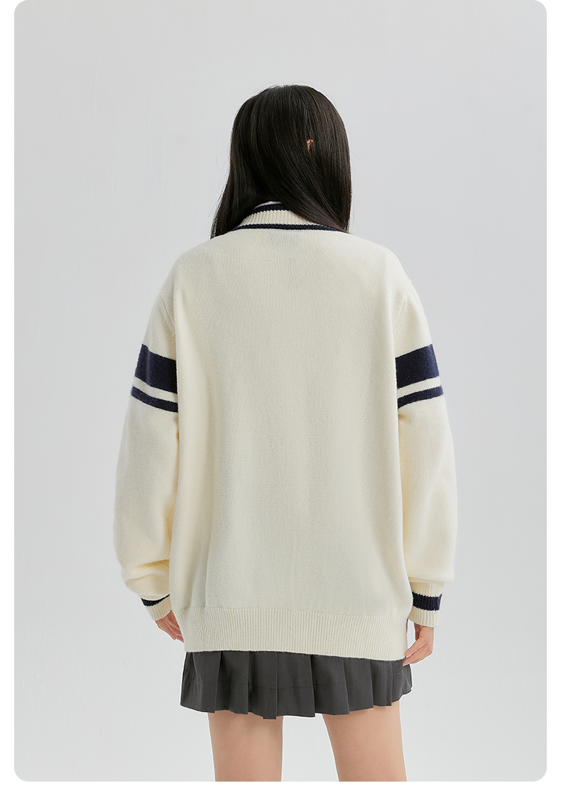YKYB开衫毛衣女新款潮流时尚学院风条纹撞色外套宽松百搭针织衫
