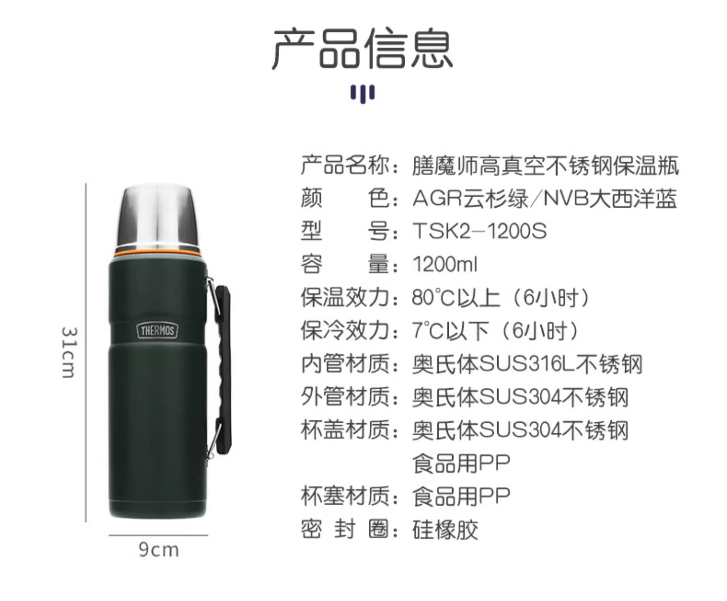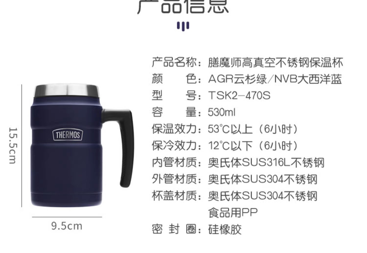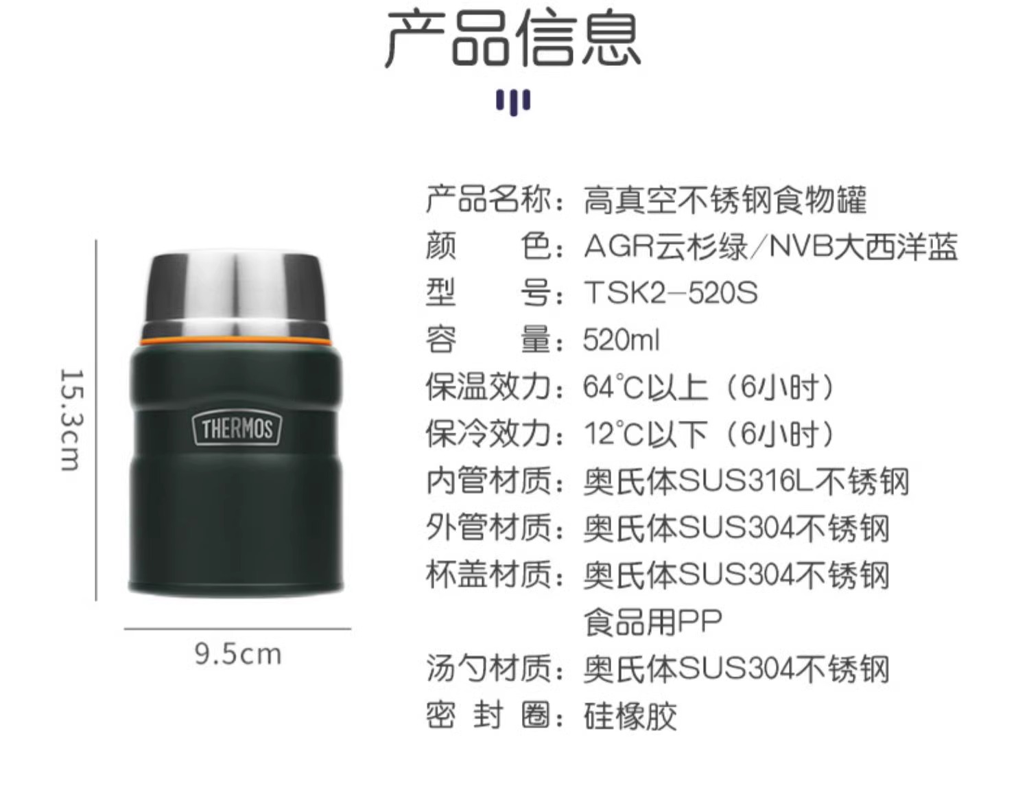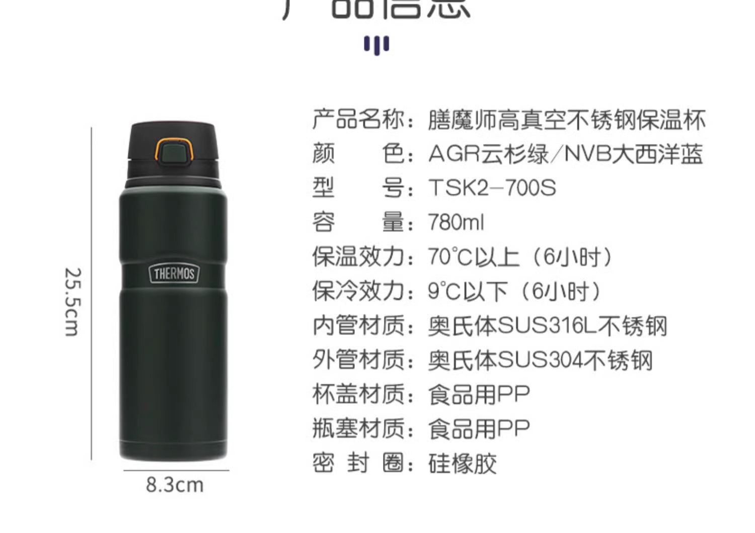 膳魔师保温杯壶焖烧杯316L不锈钢真空保温杯办公杯780ml