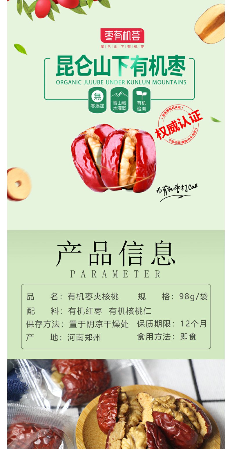 一共3袋【有!健康!】枣有荟有枣夹核桃新疆和田产区雪山融水灌溉有认证0农残0添加98g*3袋独立小包装方便携带