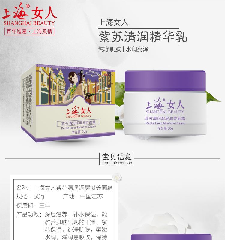 上海女人紫苏清润深层滋养面霜50g
