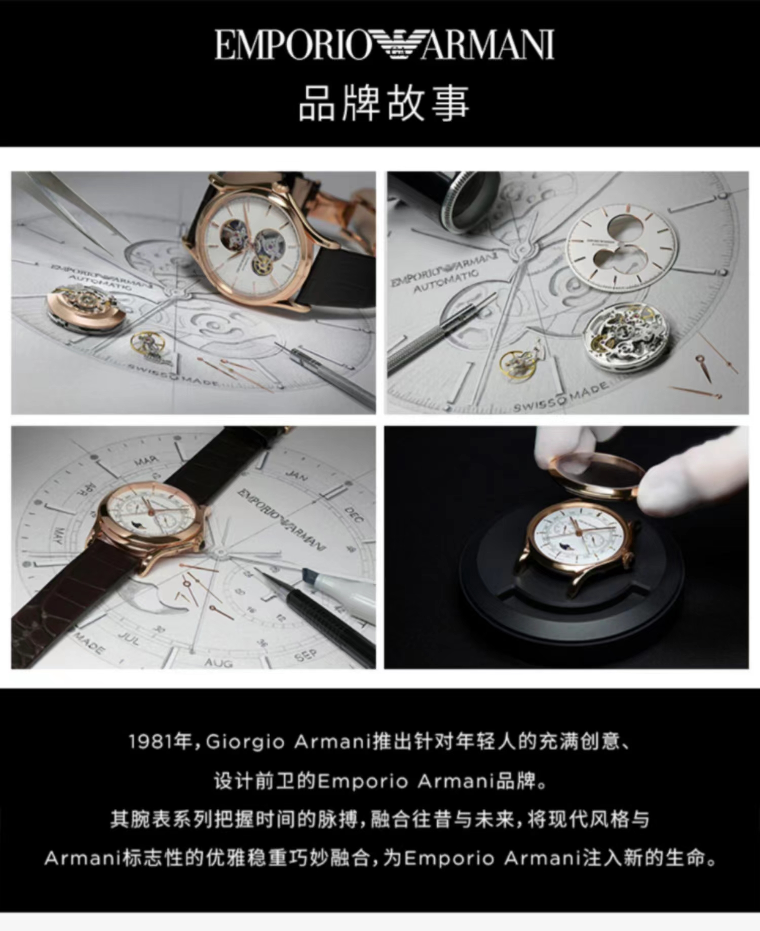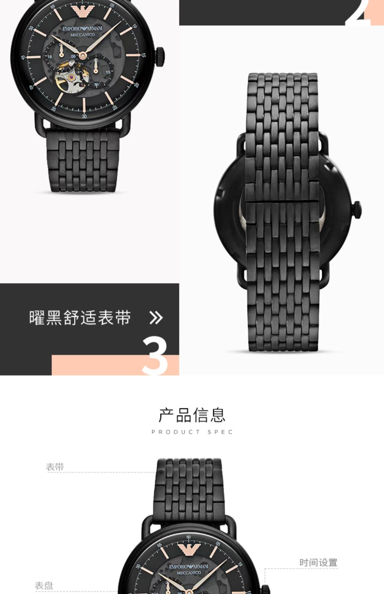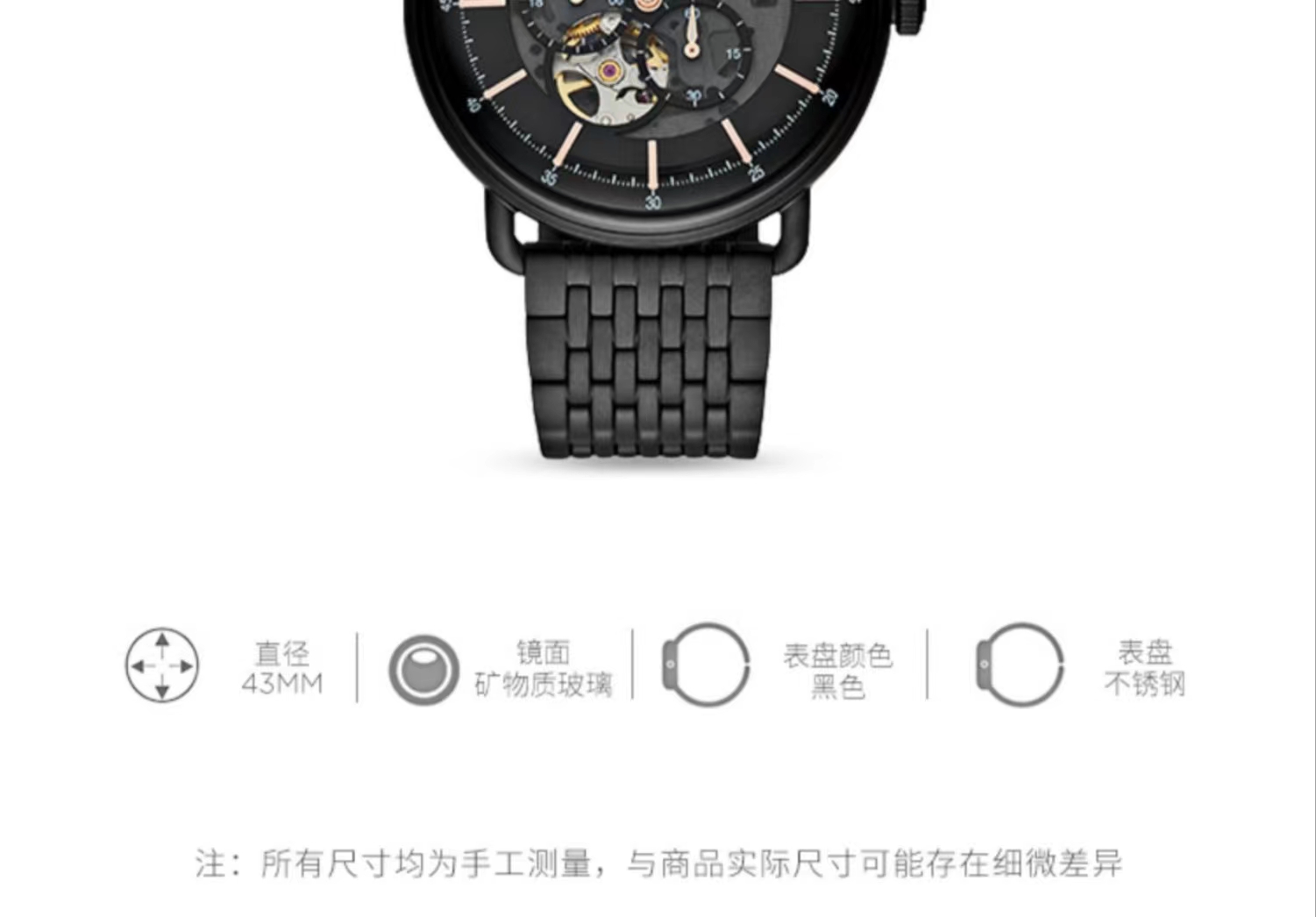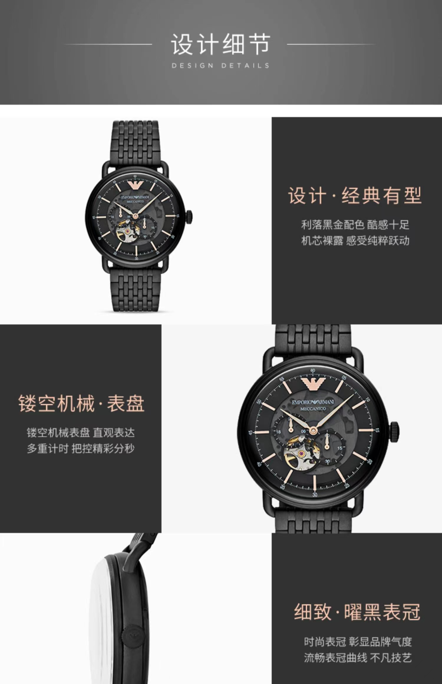 Armani阿玛尼黑武士男士手表 黑色钢带镂空防水男款机械表AR60025