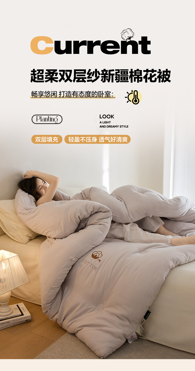 自然醒超柔双层纱新疆棉花被被子被芯LFS