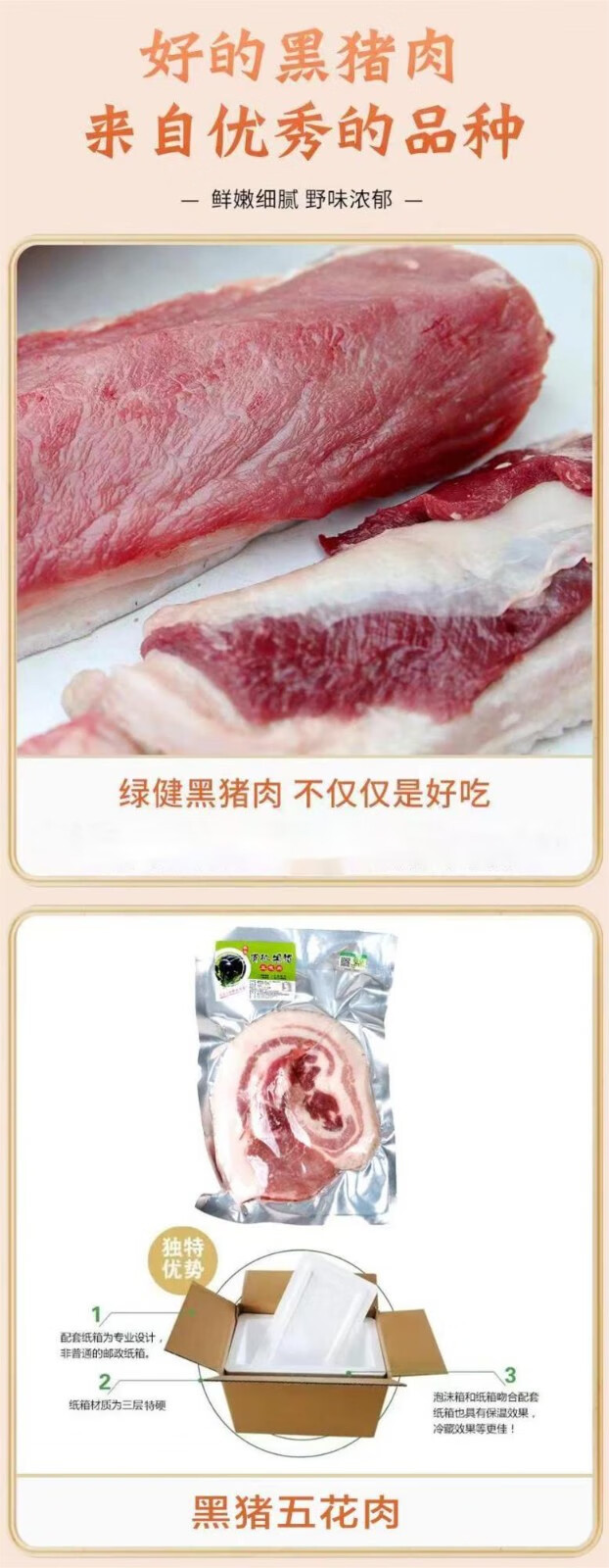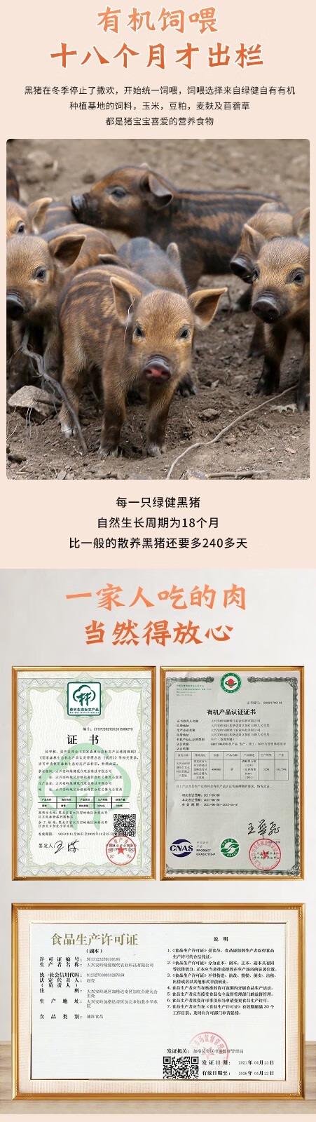 有机黑山猪带皮五花肉500g*3袋 18个月生长期