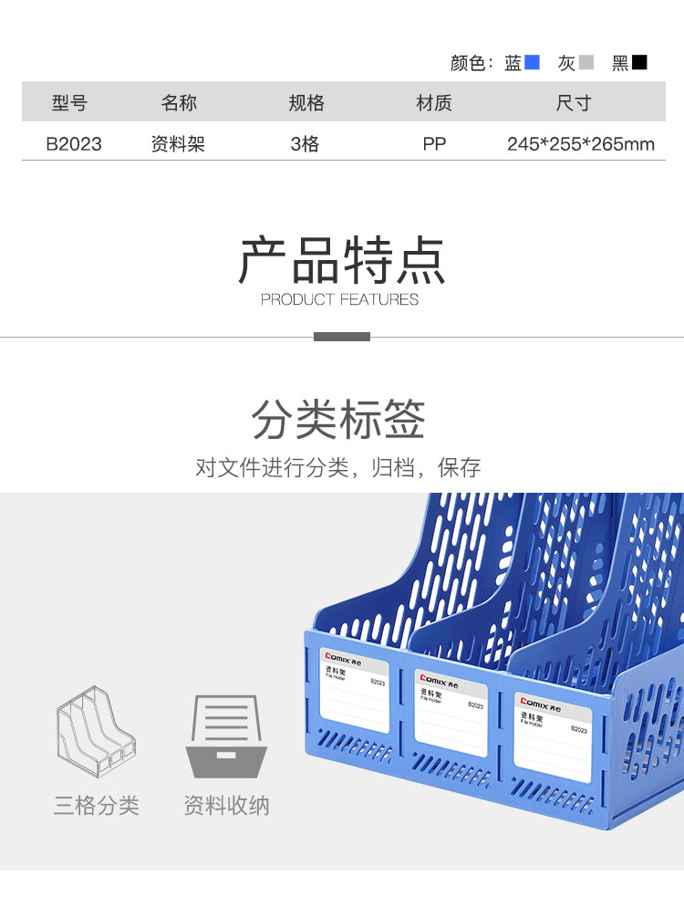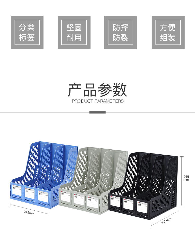 齐心 B2023 资料架(三格) 245*255*265文件筐文件架文件管理桌面收纳