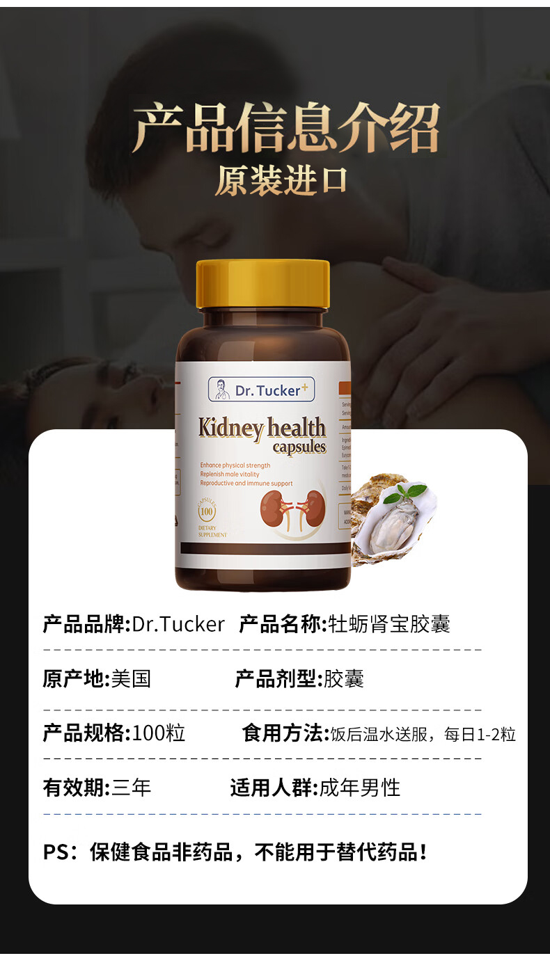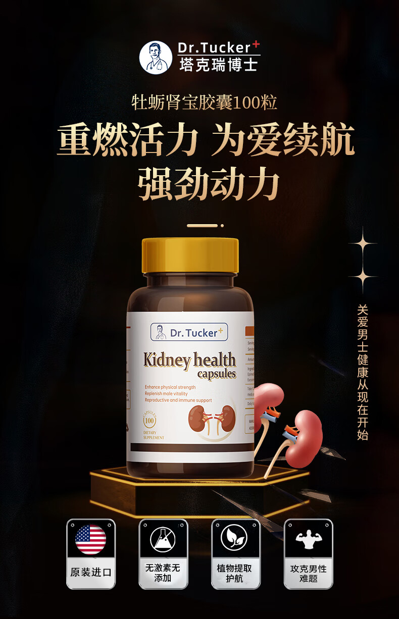 【进博会特邀】DR.TUCKER 塔克瑞博士 原装进口肾宝男性保健胶囊牡蛎肽 重燃活力 为爱续航 男性保健100粒(牡蛎肽)