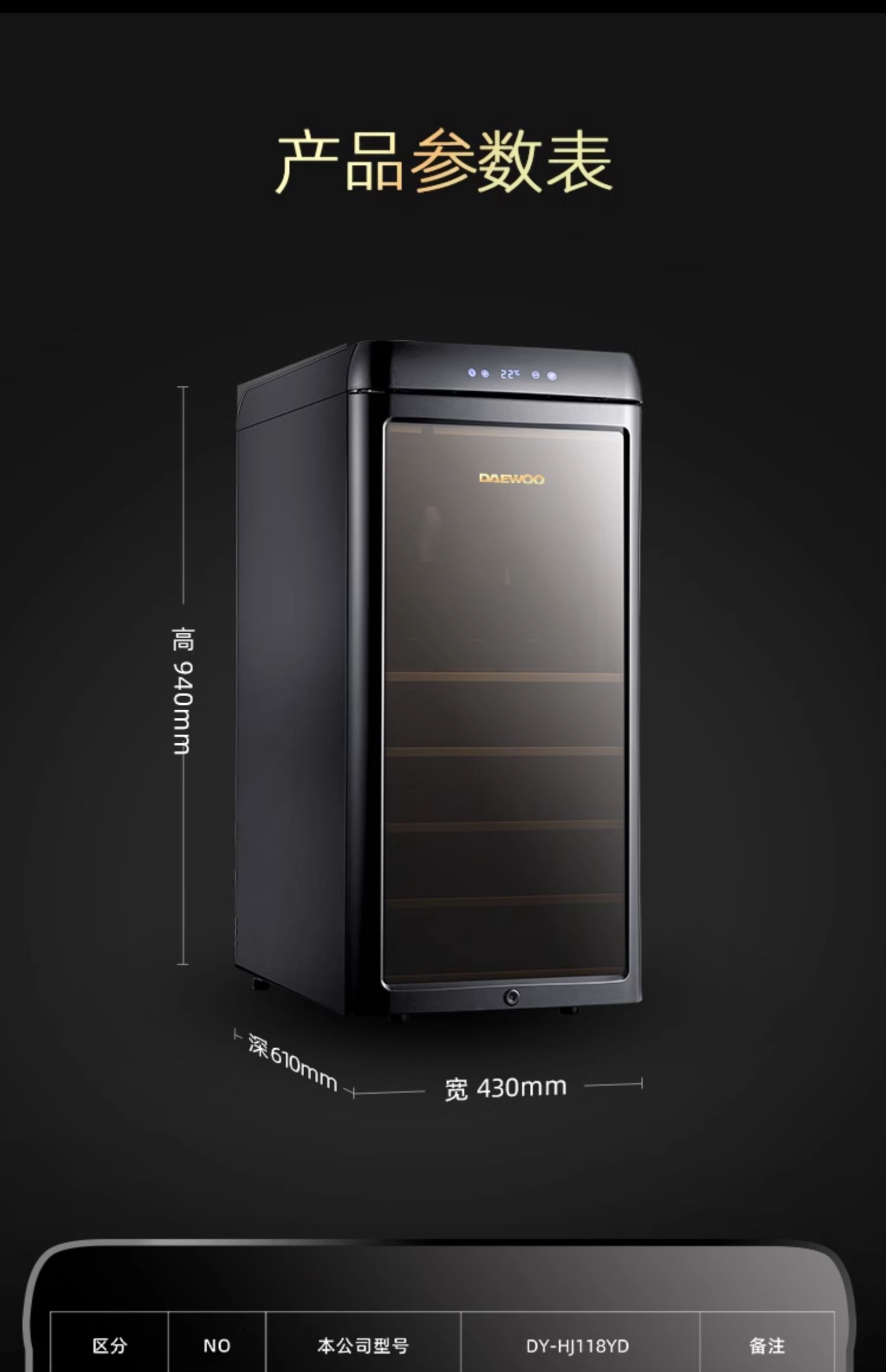 DAEWOO韩国大宇红酒柜家用客厅恒温小型冰吧葡萄酒柜冷藏茶叶柜DY-HJ118YD